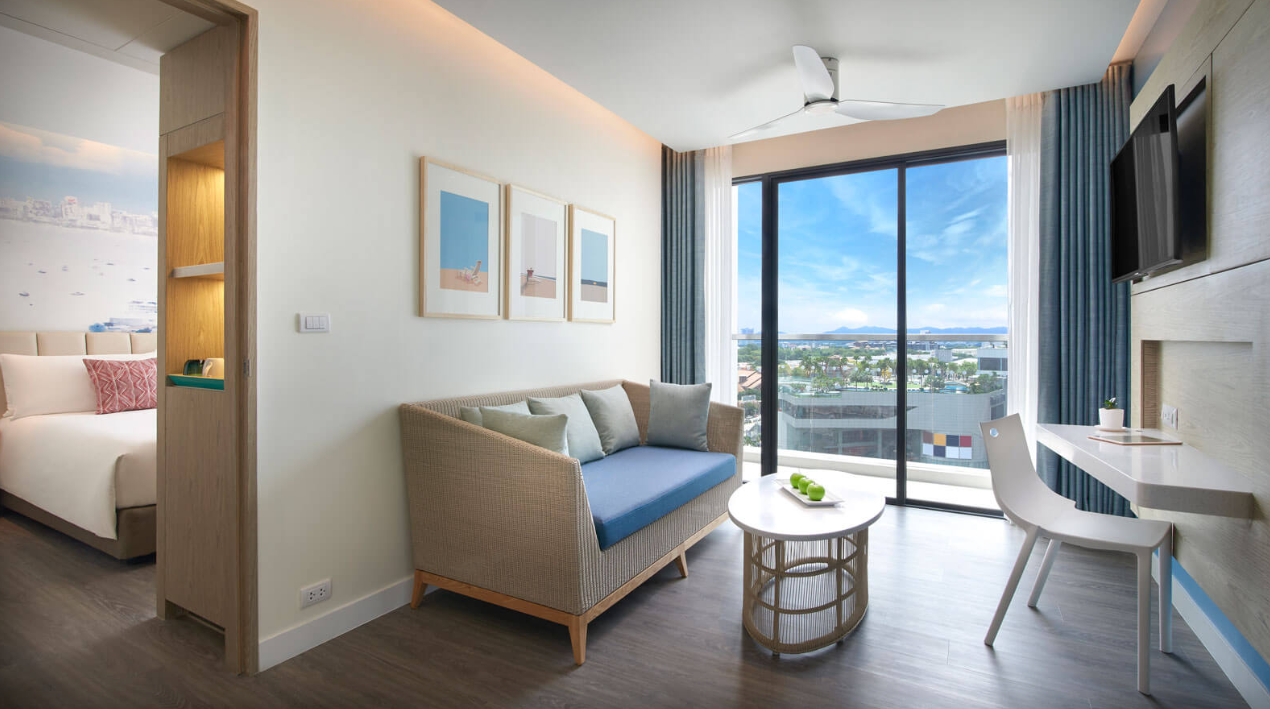 온 가족이 함께 해변에서 휴가를 보내고 싶으신가요? 더 이상 찾아보실 필요가 없습니다. 파타야 북부에 위치한 저희 리조트의 수페리어 2베드룸은 마스터 침실에 킹 사이즈 침대가 있고, 두 번째 침실에 어린이를 위한 트윈 침대가 있으며, 두 침실 모두에 평면 TV가 있습니다.