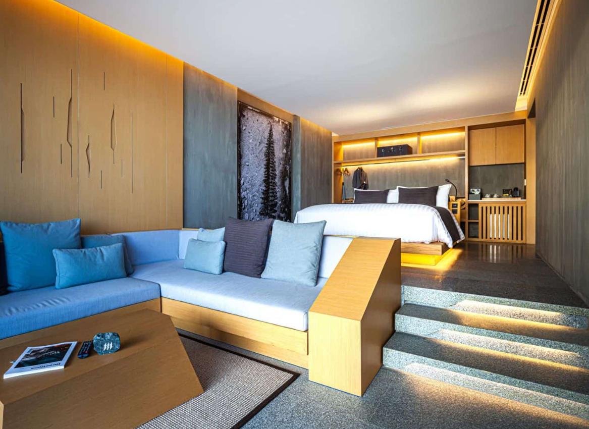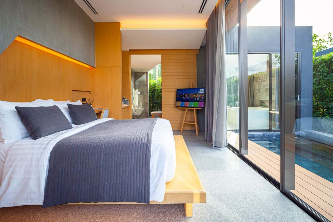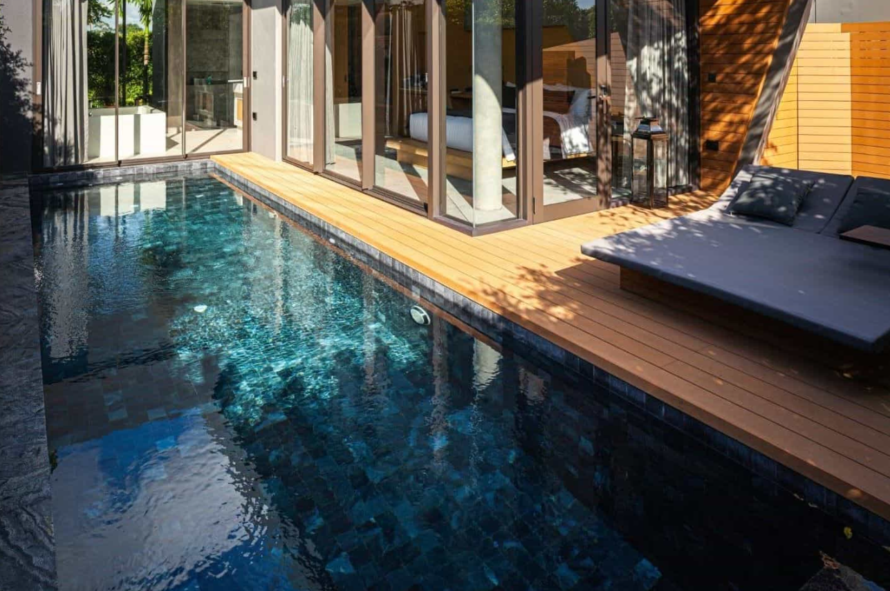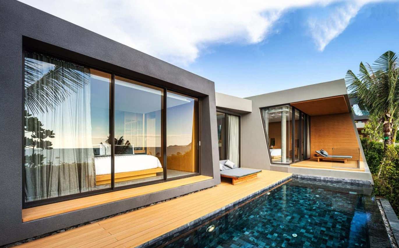 듀플렉스 그랜드 풀 빌라는 복층형 풀빌라로 빌라의 레이아웃은 거실과 외부 데크, 수영장이 서로 흐르는 듯한 느낌을 주어 공간감을 더욱 높여줍니다. 분할 레벨 디자인은 프라이버시와 절묘한 편안함을 제공합니다.