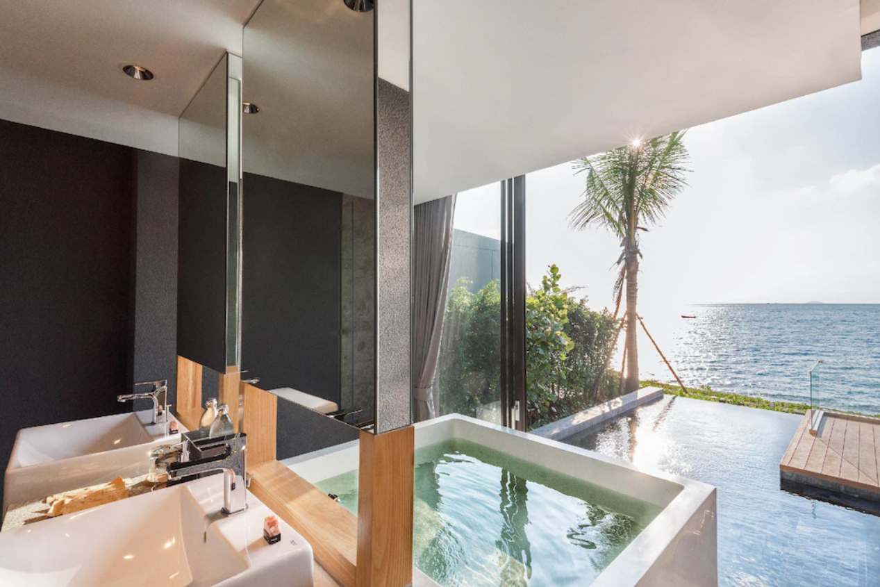 Na Jomtien에 있는 고급스러운 Beachside Seaview Pool Villa 에 숙박을 예약하시면 테라스의 넓은 프라이버시 공간에서 바다 소리를 즐기실 수 있습니다 . Beachside Seaview Pool Villas는 전용 테라스에서 만의 멋진 전망을 제공합니다. 바다에서 수영을 하거나 전용 해수 수영장에서 상쾌하게 수영을 즐겨보세요. 모든 럭셔리 풀빌라에는 무료 WIFI 서비스, 무알코올 음료, 매일 보충되는 다양한 스낵이 제공됩니다.