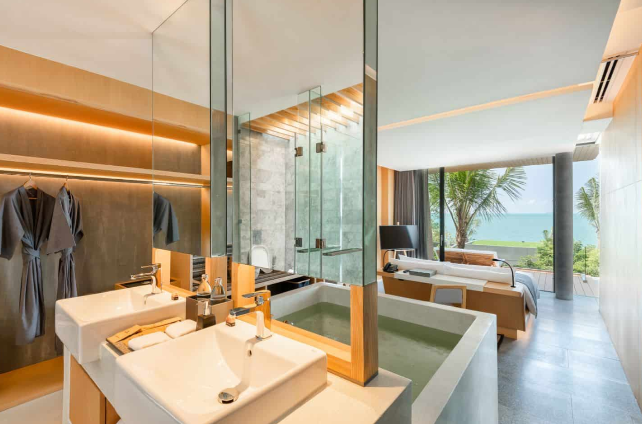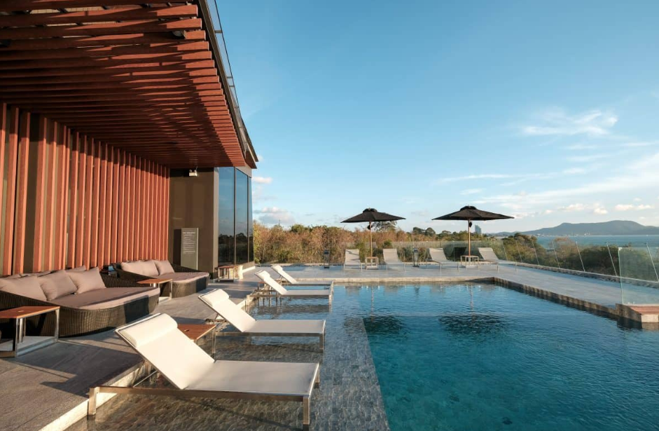 Na Jomtien에 위치한 고급스럽고 넓은 168제곱미터의 해변가 그랜드 풀 빌라는 바위 꼭대기에서 파타야 베이의 탁 트인 전망을 제공합니다. 이 초현대적인 1베드룸 풀 빌라는 따뜻한 목재 장식과 천장부터 바닥까지 내려오는 대형 창문을 갖추고 있어 탁 트인 일몰 전망을 제공합니다. 빌라의 무료 네스프레소 머신을 이용해 넓은 테라스에서 모닝 커피를 즐기거나 개인 청록색 수영장에 몸을 담그고 하루를 시작해 보세요.
