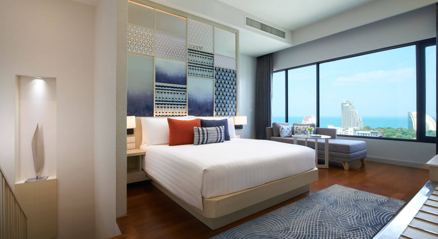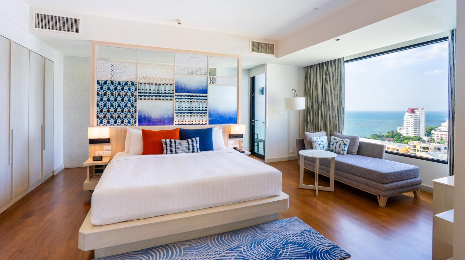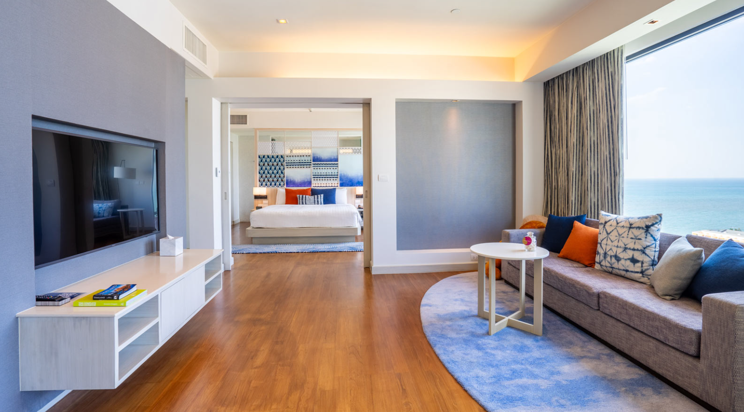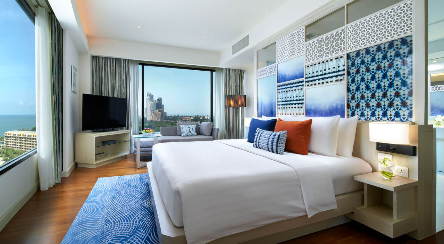 디럭스룸에서 바다를 바라보는 숙박을 생동감 있게 해석한 경험을 해보세요. 북부 파타야 리조트에 있는 친밀하면서도 현대적인 객실은 거실 공간, 업무용 책상, 파타야의 활기찬 분위기가 내려다보이는 발코니를 갖추고 있습니다.