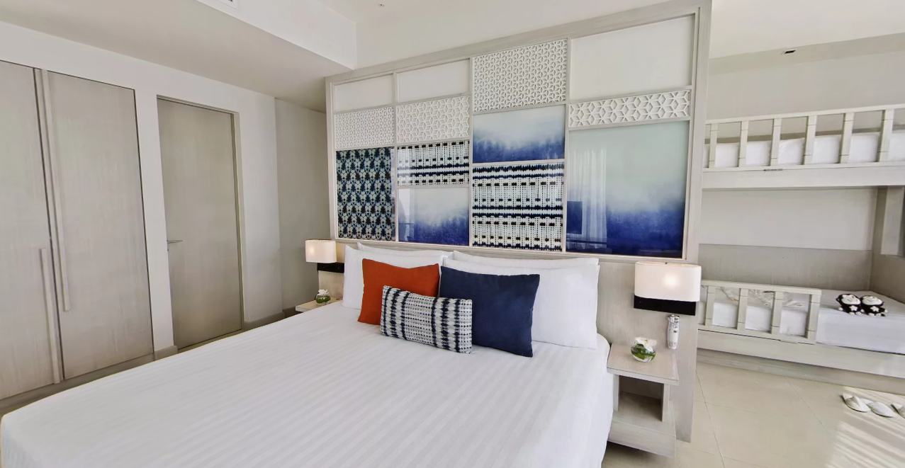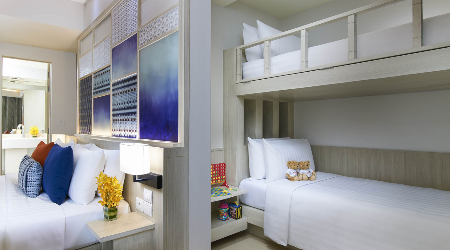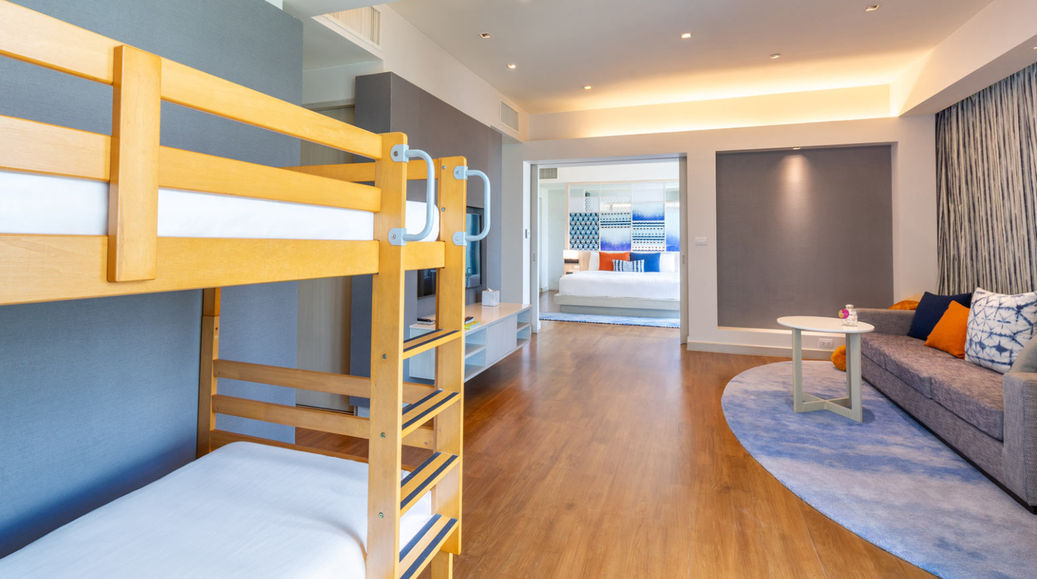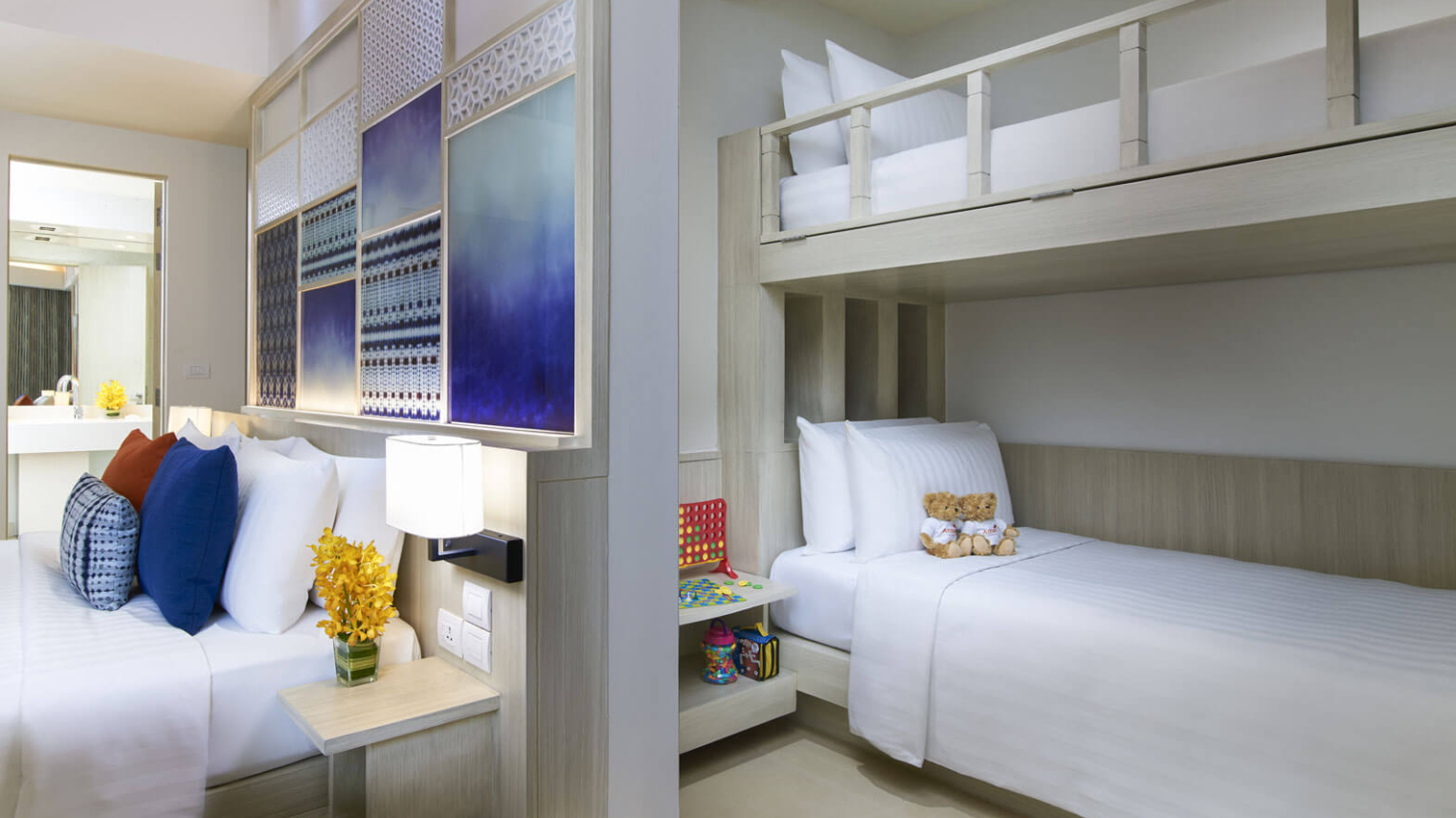 킹 사이즈 침대와 이층 침대를 갖춘 클럽 디럭스 패밀리룸에서 최고의 가족 휴가를 경험해보세요. 성인 2명과 어린이 2명 또는 성인 3명이 숙박하기에 이상적인 이 객실은 편안함과 편리함을 제공하며 특별 대우를 받을 수 있는 Club Napha 전용 이용 혜택도 제공합니다.