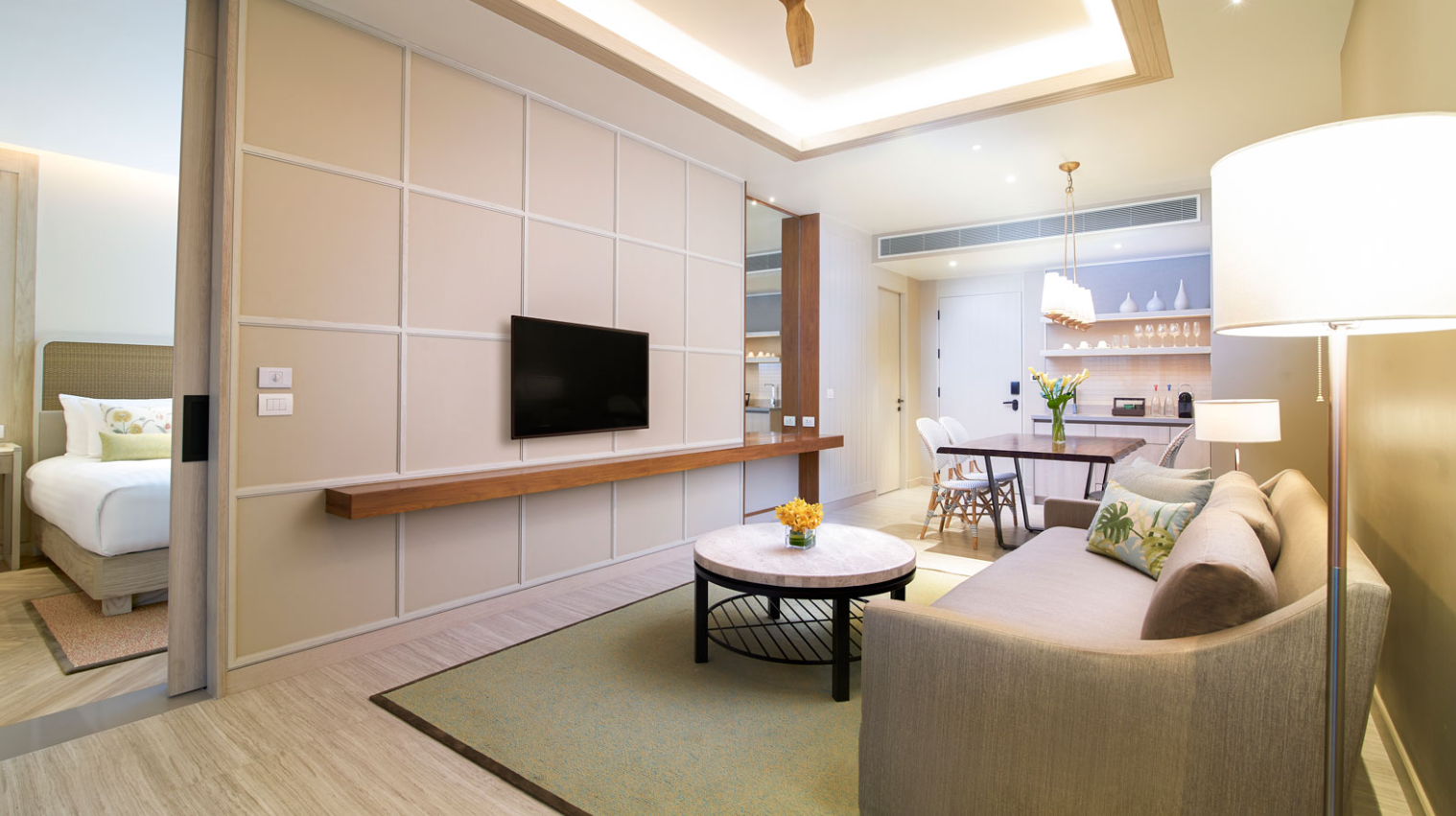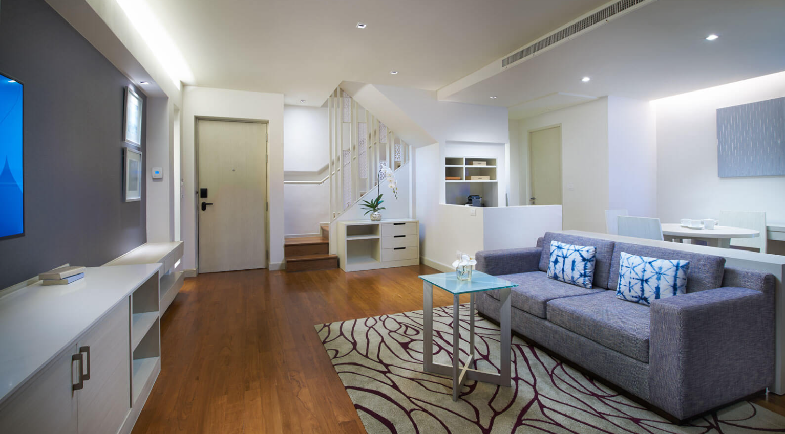 파타야 북부에 있는 바다쪽 리조트의 2개 층에 걸쳐 있는 클럽 듀플렉스 스위트는 편안하면서도 한적한 환경을 갖추고 있습니다. 우아한 스위트룸은 Club Napha 이용 및 혜택을 제공하며, 2층에 킹 사이즈 침대가 있고, 1층에 별도의 거실과 식사 공간, 간이 주방 및 전용 발코니가 마련되어 있습니다.