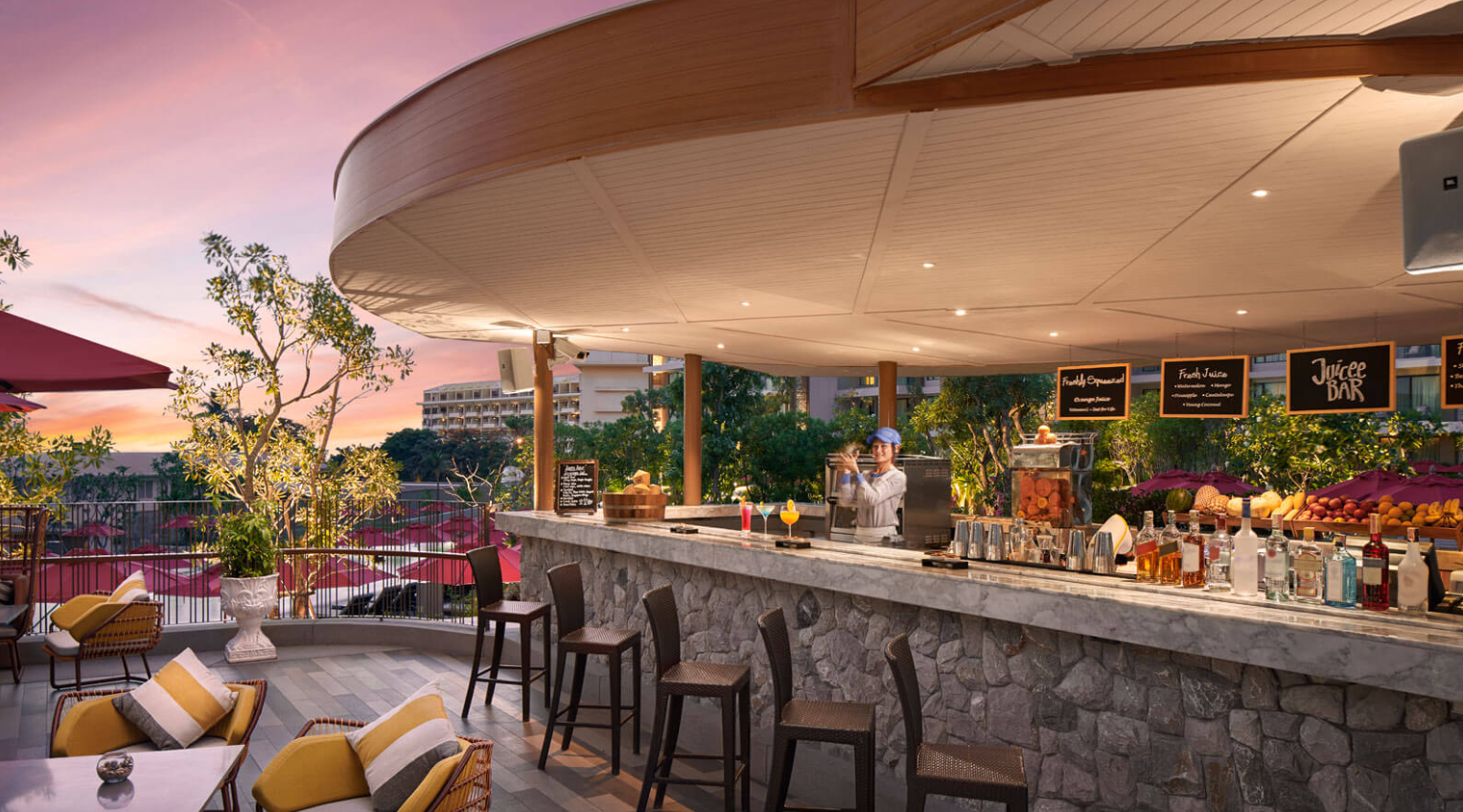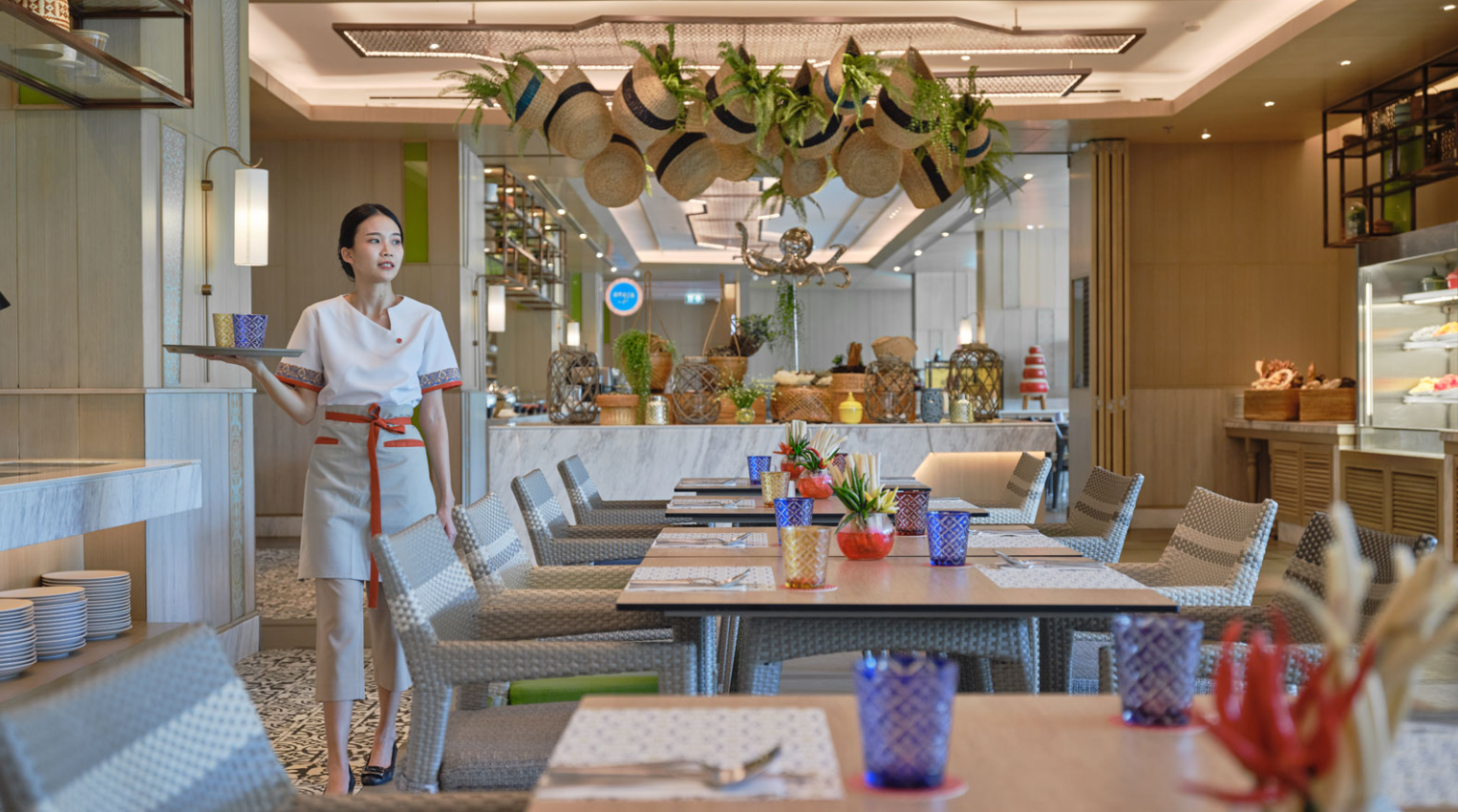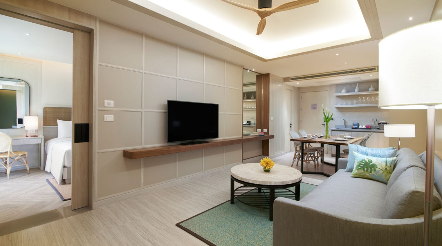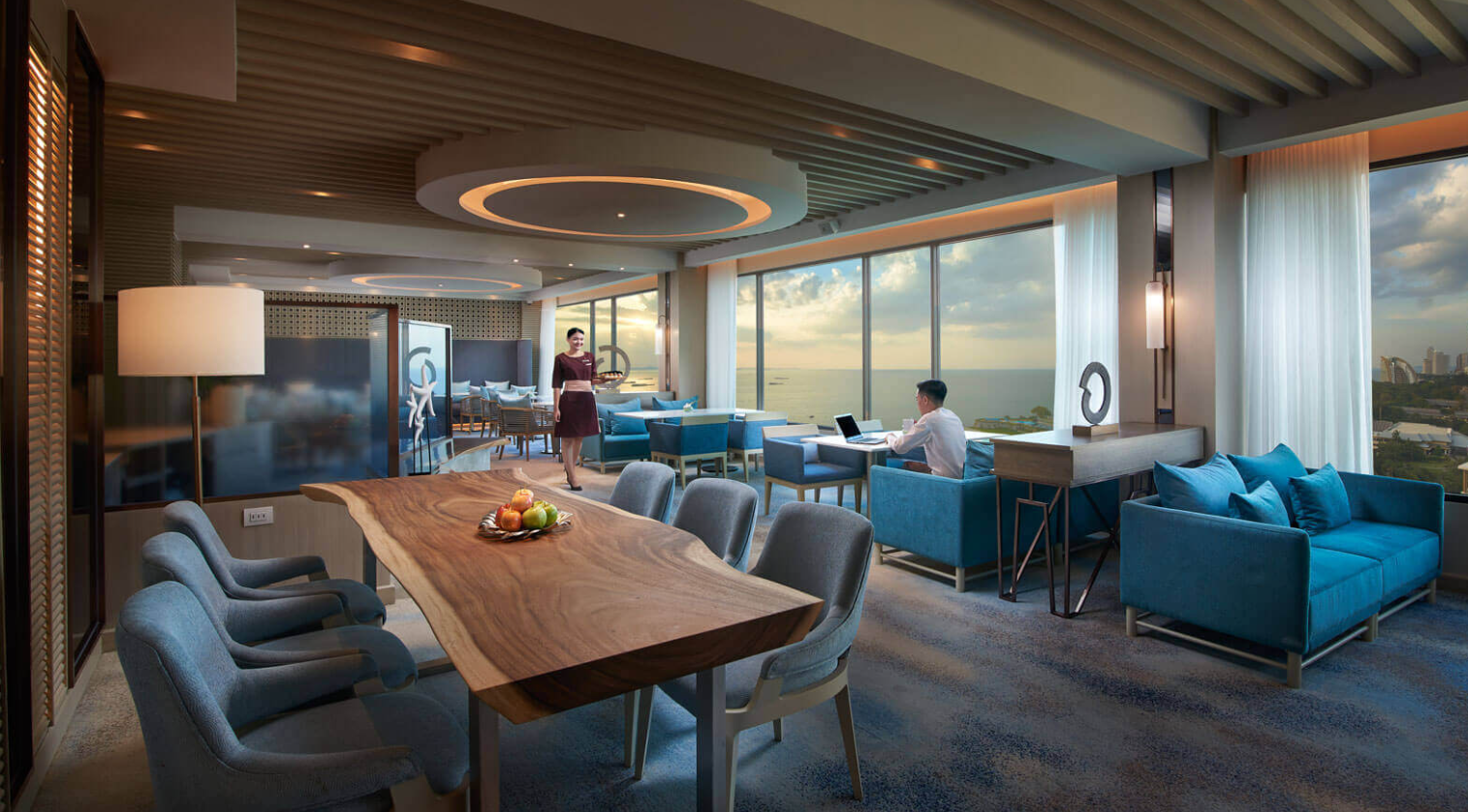 더 넓은 객실 크기, 성인 2명과 어린이 2명 또는 성인 3명이 사용할 수 있는 이층 침대와 최상층에서 탁 트인 바다 전망을 제공하는 넓은 클럽 이그제큐티브 오션 패밀리 스위트룸으로 가족을 대접하세요. 이 스위트룸은 넉넉한 크기의 마스터 침실, 발코니, 별도의 거실과 식사 공간, 편리한 간이 주방을 갖추고 있습니다.