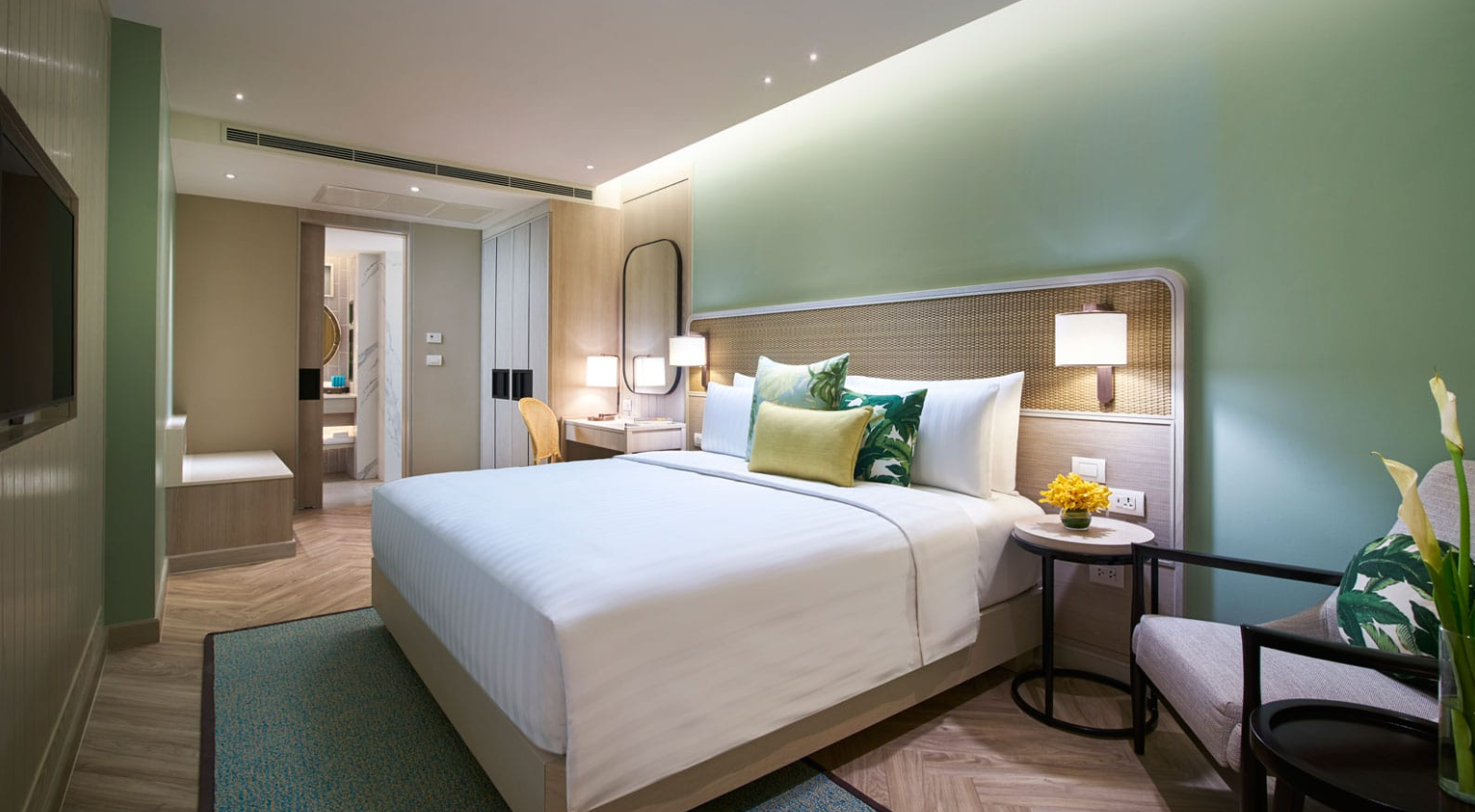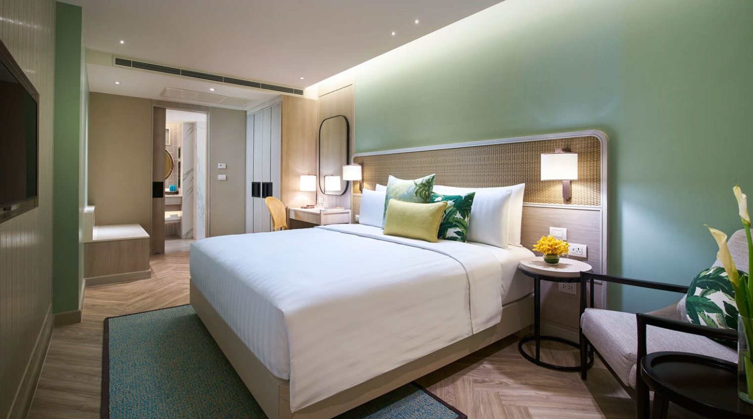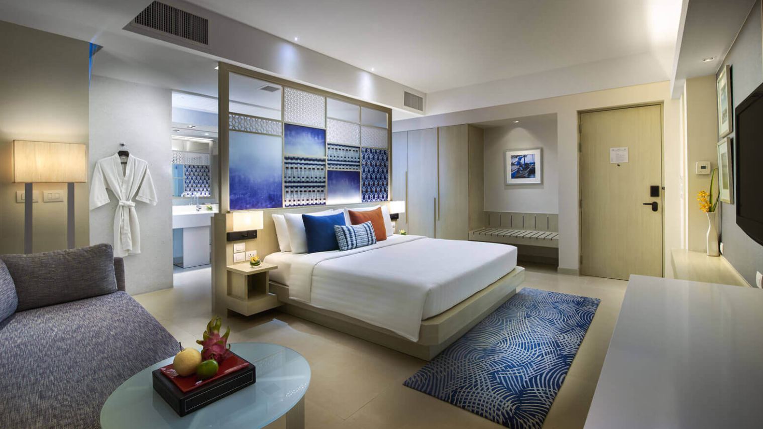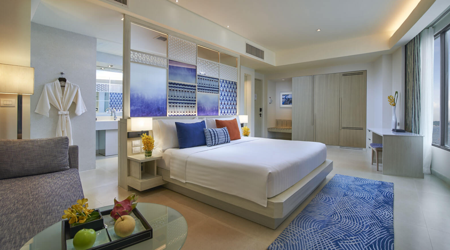 북부 파타야에 있는 5성급 리조트의 최상층에 위치한 클럽 이그제큐티브 오션 스위트는 파타야 베이의 탁 트인 전망을 자랑합니다. 가족 친화적인 이 스위트룸은 Club Napha 이용 및 혜택을 제공하며, 넓은 마스터 침실, 발코니, 별도의 거실과 식사 공간, 간이 주방을 갖추고 있습니다.
