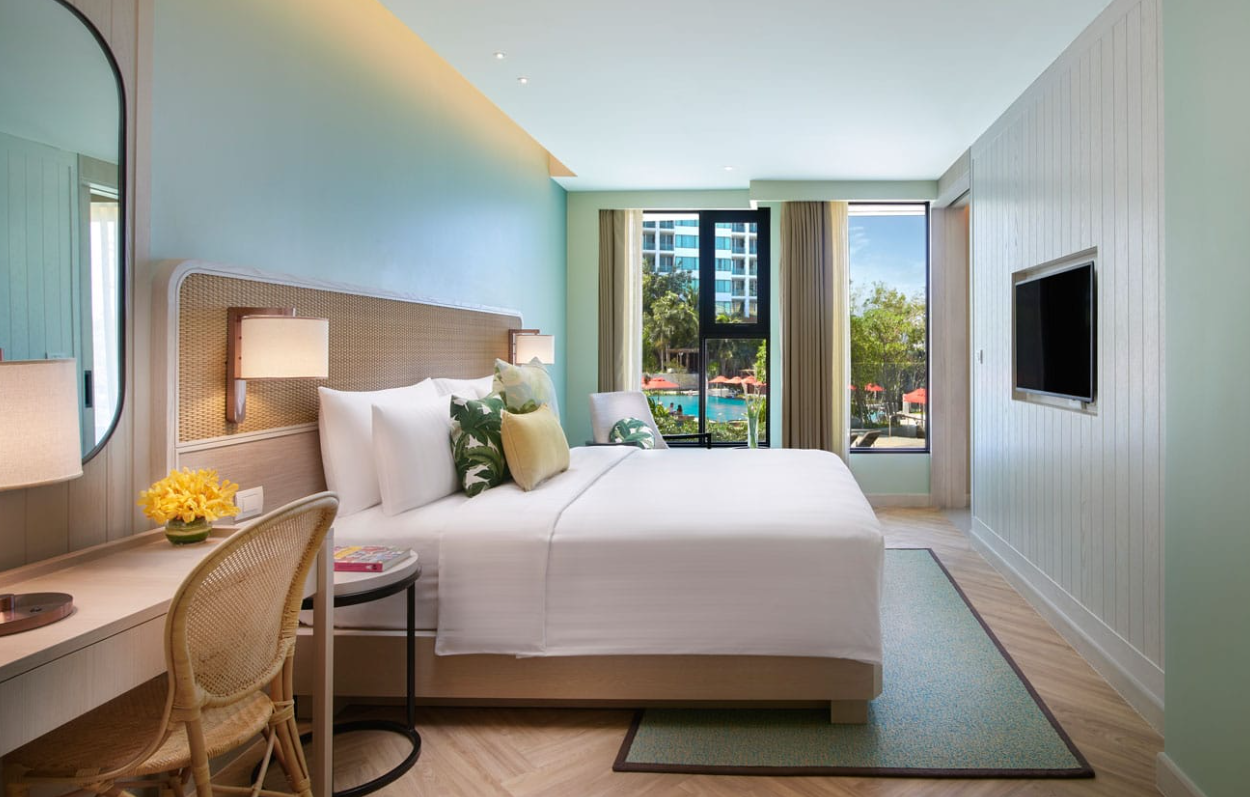 수영장의 활기 넘치는 전망을 갖춘 디럭스 풀 뷰는 귀하의 다음 모험에 영감을 주도록 설계되었습니다. 가구가 완비된 현대적인 객실은 별도의 욕조와 샤워 시설, 평면 TV, 업무용 책상을 갖추고 있습니다.