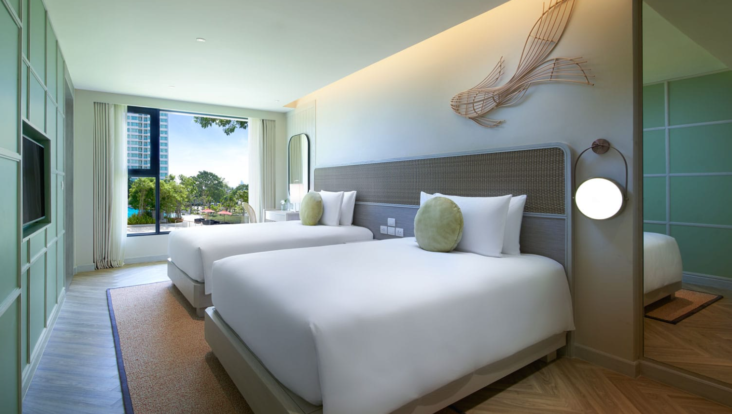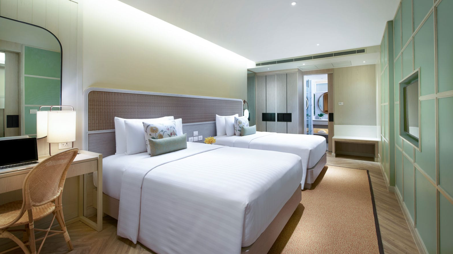 Amari Suite Poolside의 발코니에서 수영장으로 쉽게 접근하여 세상을 밝게 만드세요. 편안함과 편리함을 고려하여 세심하게 디자인된 이 2베드룸 스위트는 별도의 거실과 식사 공간, 마스터 침실에 킹침대, 두 번째 침실에 퀸침대 2개를 갖추고 있습니다.