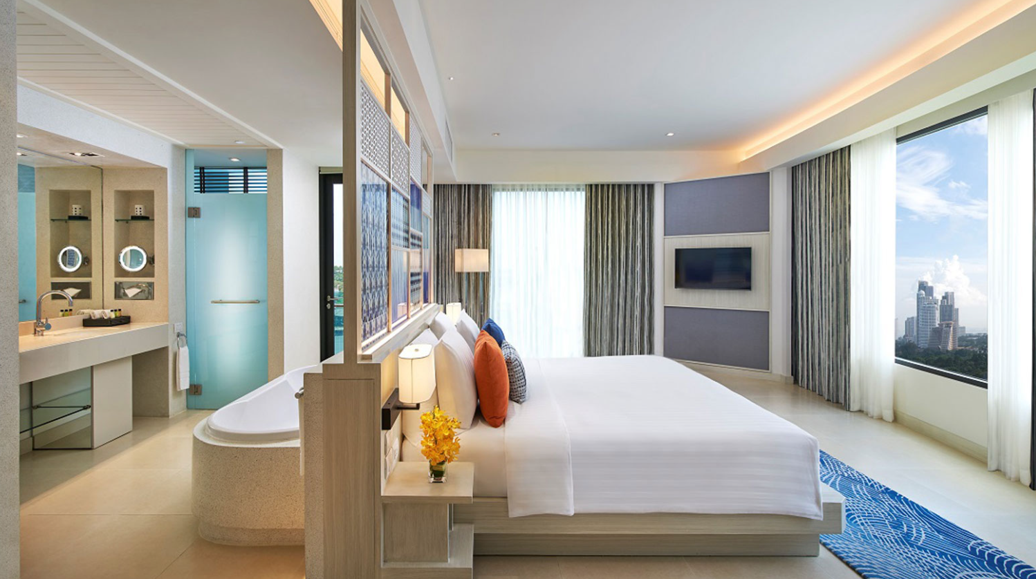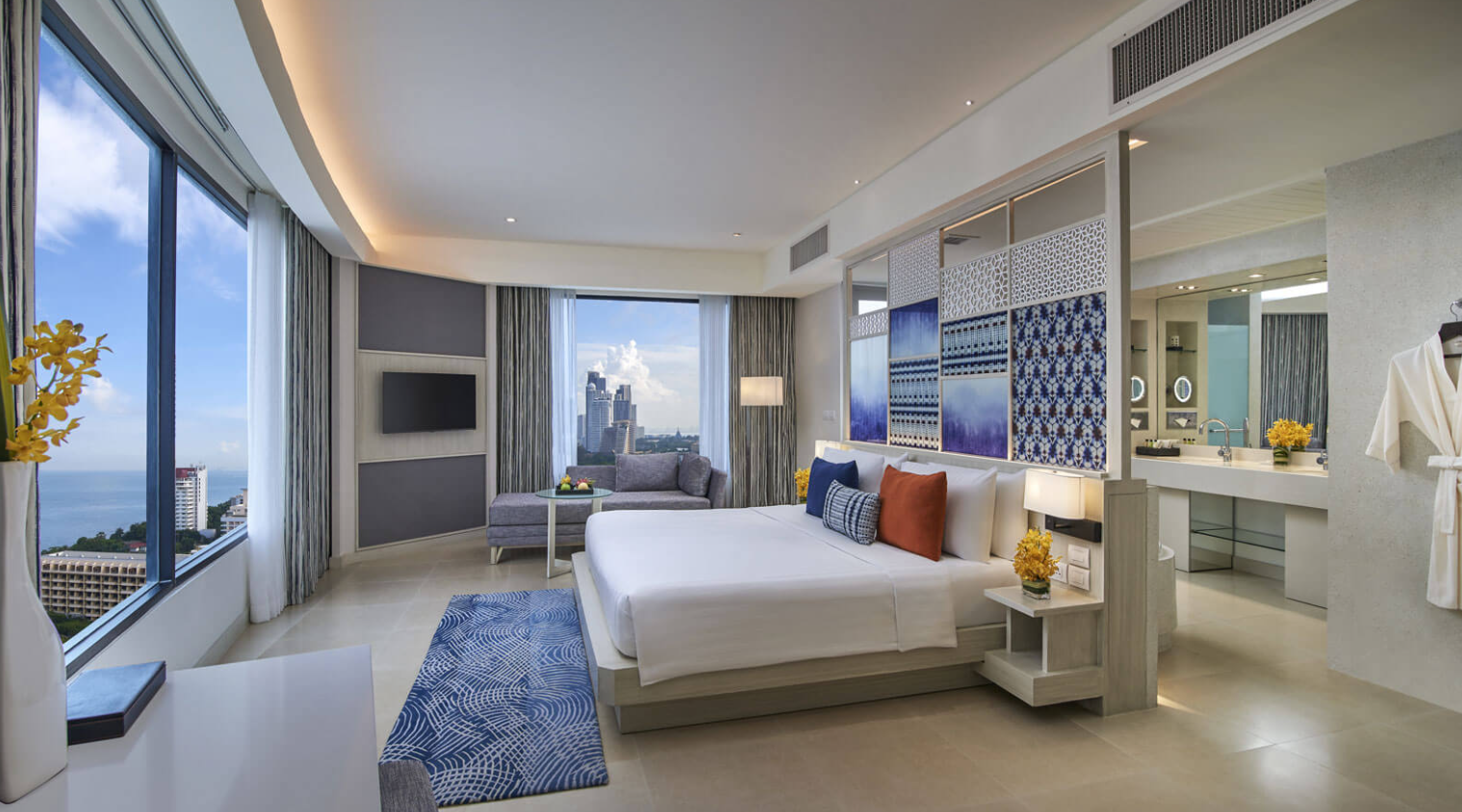 넓고 현대적인 5성급 숙박 시설은 업무와 휴식을 위한 이상적인 장소입니다. 가구가 완비된 파타야의 객실은 발코니, 거실 공간, 별도의 욕조와 샤워 시설을 갖추고 있습니다.