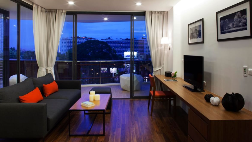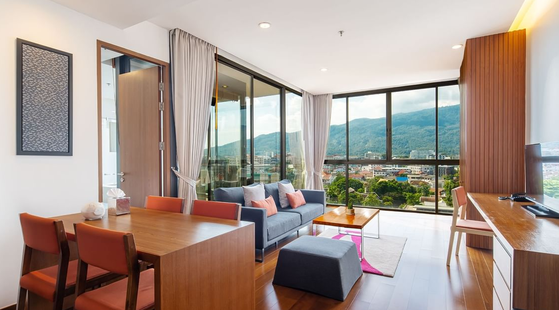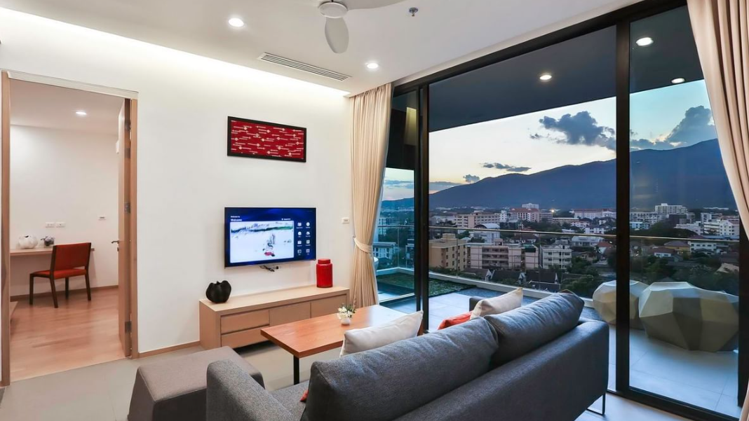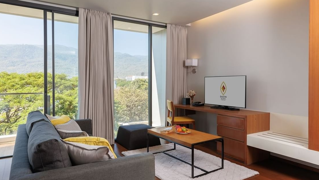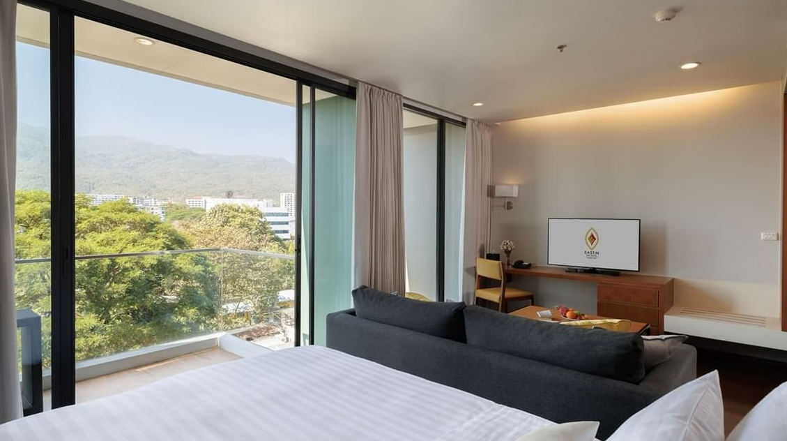 욕조가 딸린 1베드룸 스위트 마운틴 뷰 객실에서 편안하게 도이수텝의 멋진 전망을 포함하여 치앙마이의 아름다운 산의 탁 트인 전망을 즐겨보세요.