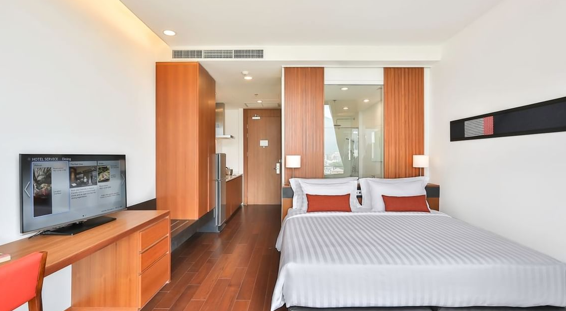 모든 디럭스룸(욕조 포함)은 고급 침구, 개별 조절이 가능한 에어컨, 세계 각국의 채널이 편성된 LCD TV, 무료 Wi-Fi 인터넷을 갖추고 있습니다. 투숙객이 사용할 수 있는 작은 식료품 저장실과 스토브도 마련되어 있습니다. 기타 객실 내 편의 시설로는 샤워 시설, 욕조, 잘 갖춰진 대형 냉장고, IDD 전화기, 차/커피 메이커, 헤어드라이어 및 안전 금고가 있습니다. 킹 사이즈 침대만 이용 가능합니다.