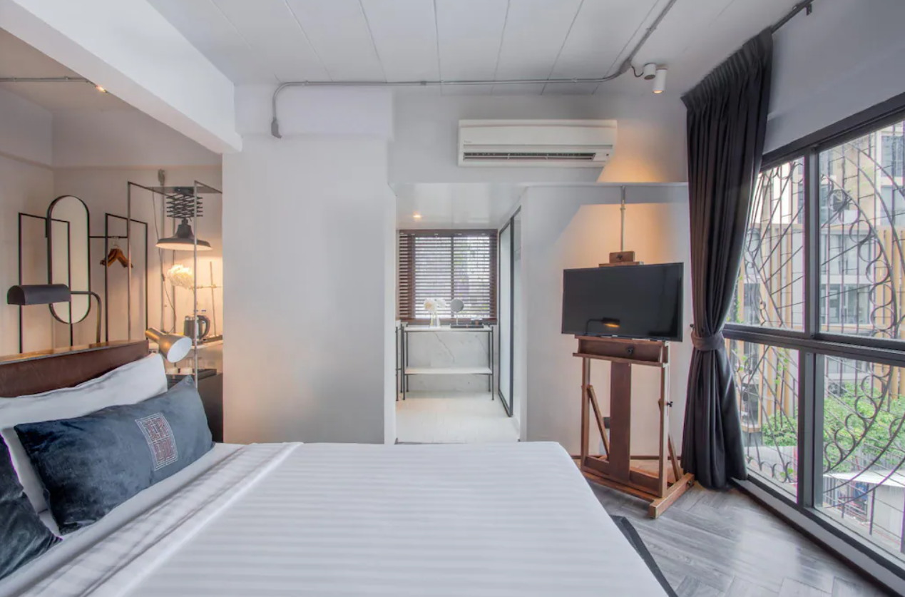 트리플룸 중 첫 번째인 이 객실 유형에는 주변 풍경을 감상하며 휴식을 취할 수 있는 작은 거실 공간이 마련되어 있습니다. 샤워실은 IR-ON의 중앙 위치를 보여주기 위해 특별히 설계되었습니다. 이곳에서 손님들은 방콕 주변 지역을 관찰하고 그 중심에서 생활하는 것이 진정 어떤 느낌인지 경험할 수 있습니다.
