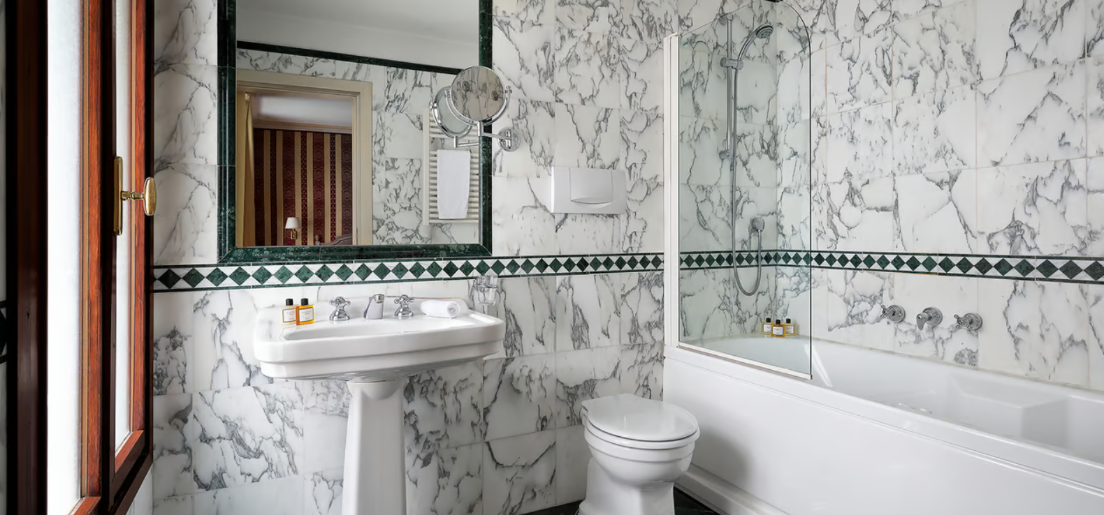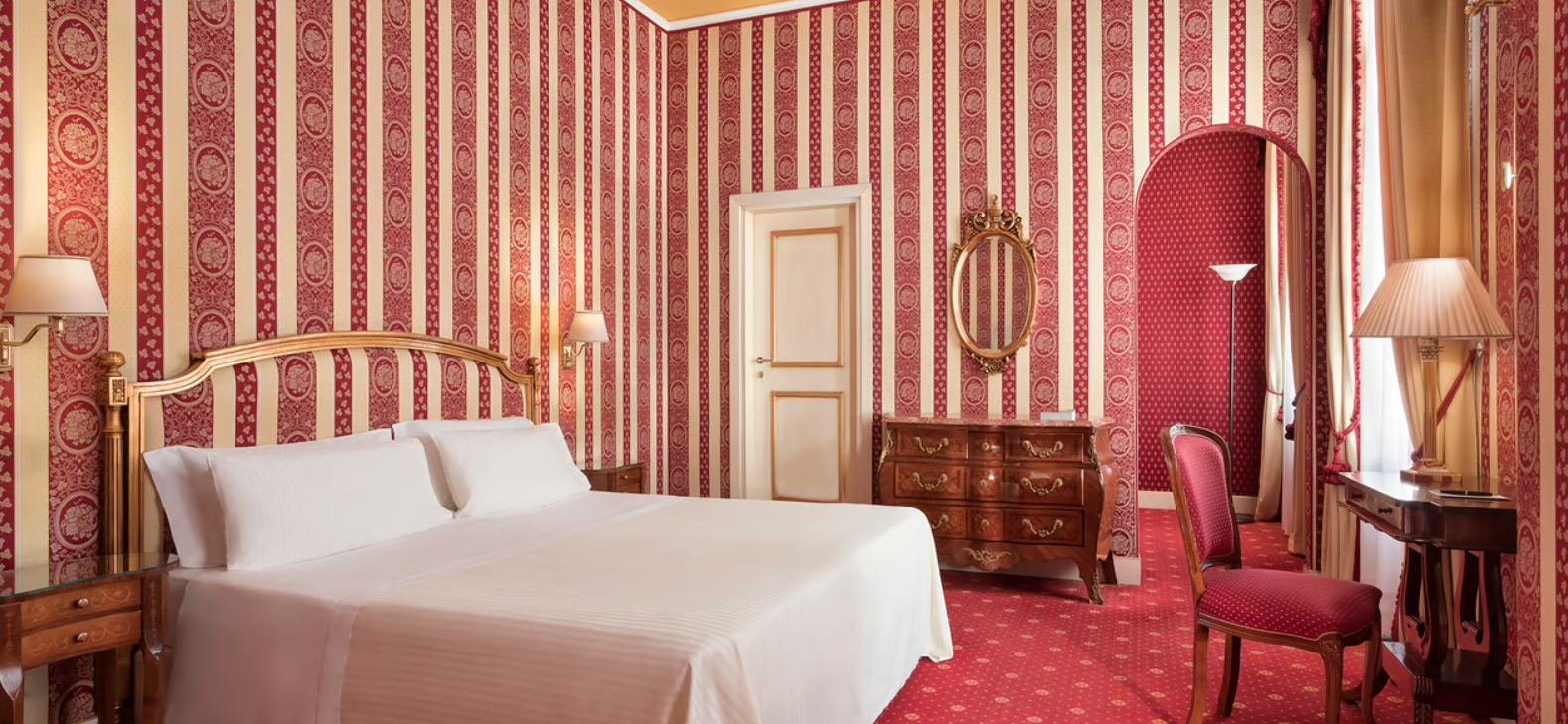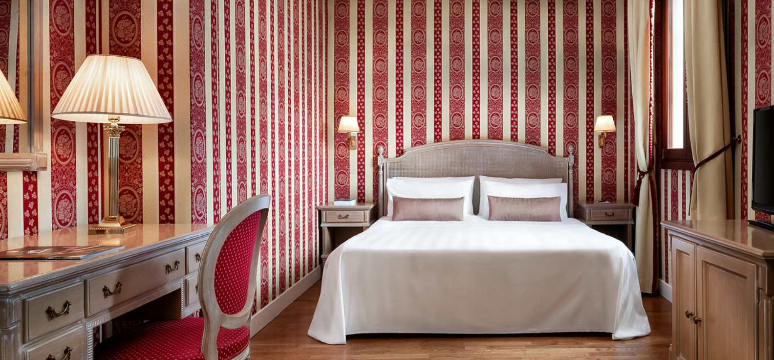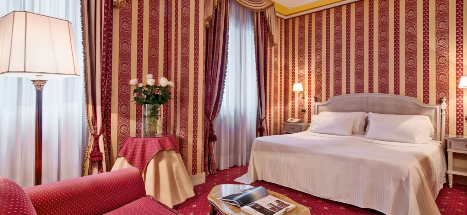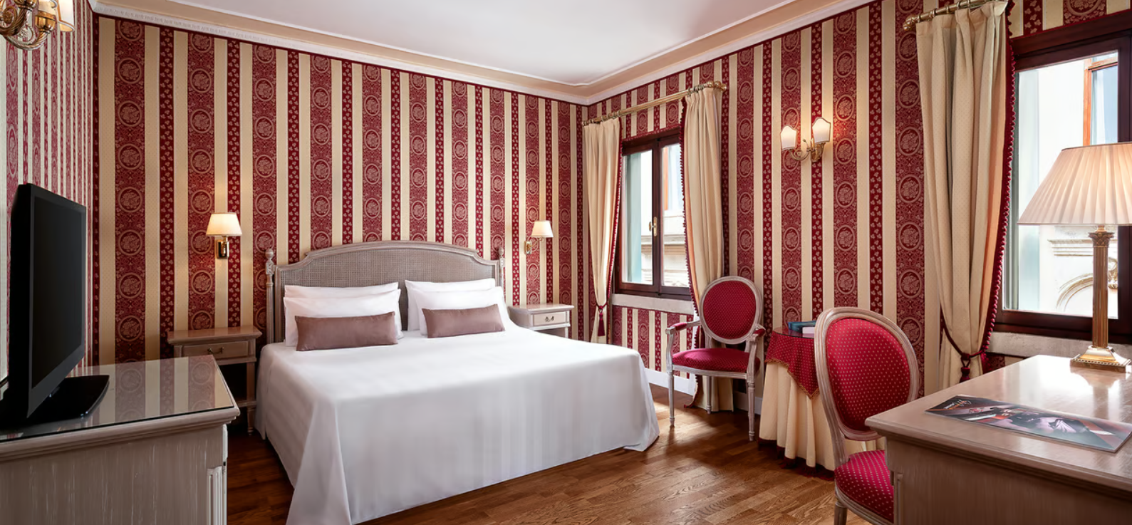 클래식 룸은 우아함을 희생하지 않고도 편안하고 실용적인 객실을 원하신다면 최고의 선택입니다. 더블 또는 트윈, 약 18제곱미터에 있으며, 편안한 스타일과 가구는 베니스의 낭만적인 본질을 반영합니다. 따뜻한 파스텔 색상의 객실에는 월풀 욕조가 있는 카라라 대리석 욕실이 있습니다. 일부 객실은 조용한 측면 운하를 바라보고, 다른 객실은 고요한 내부 정원을 바라봅니다.