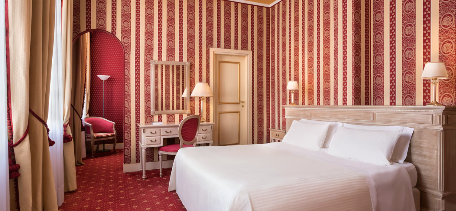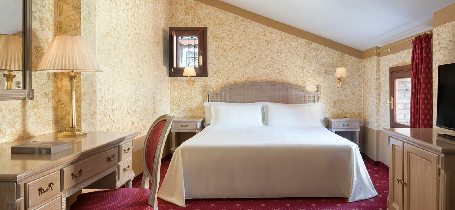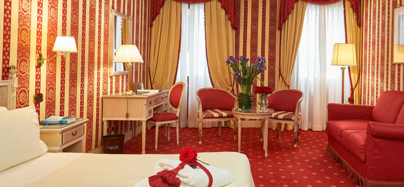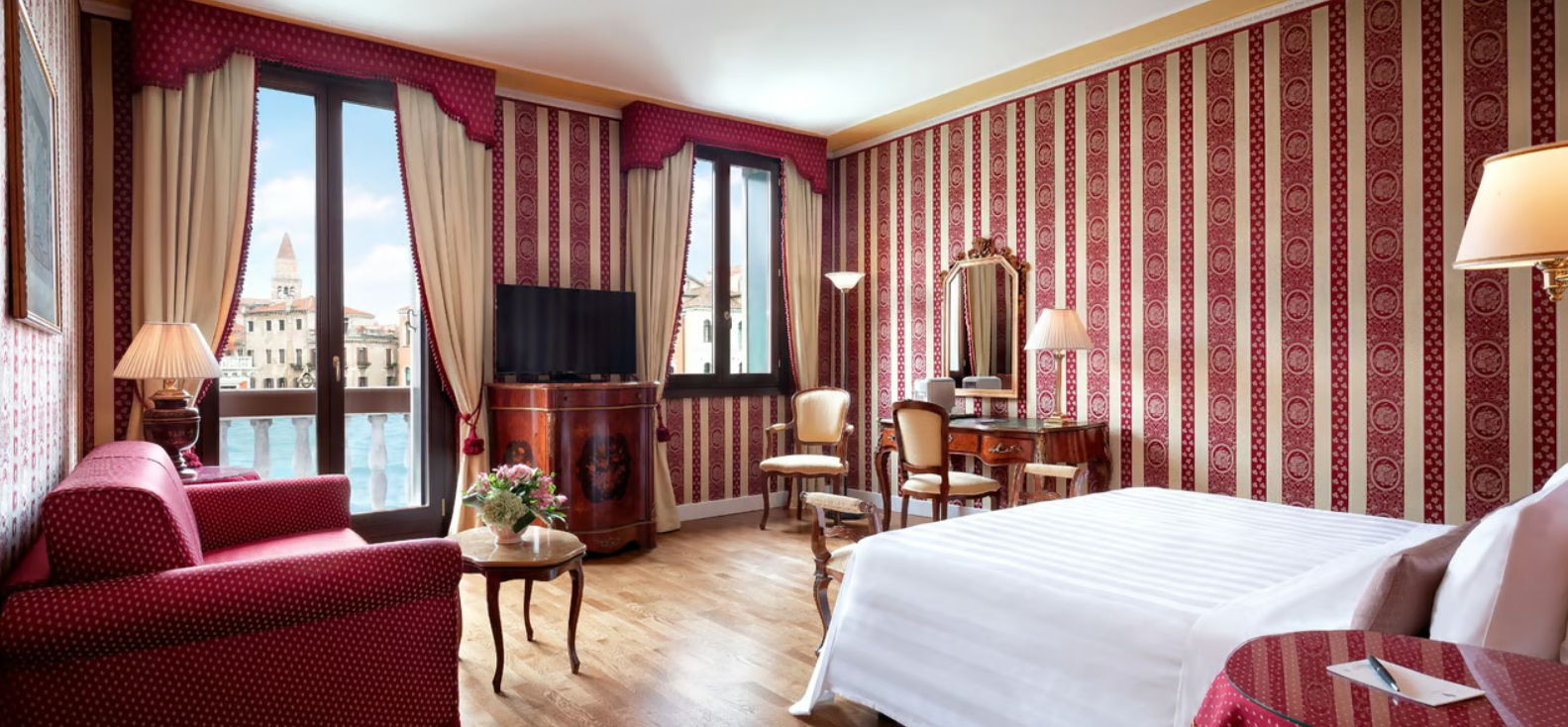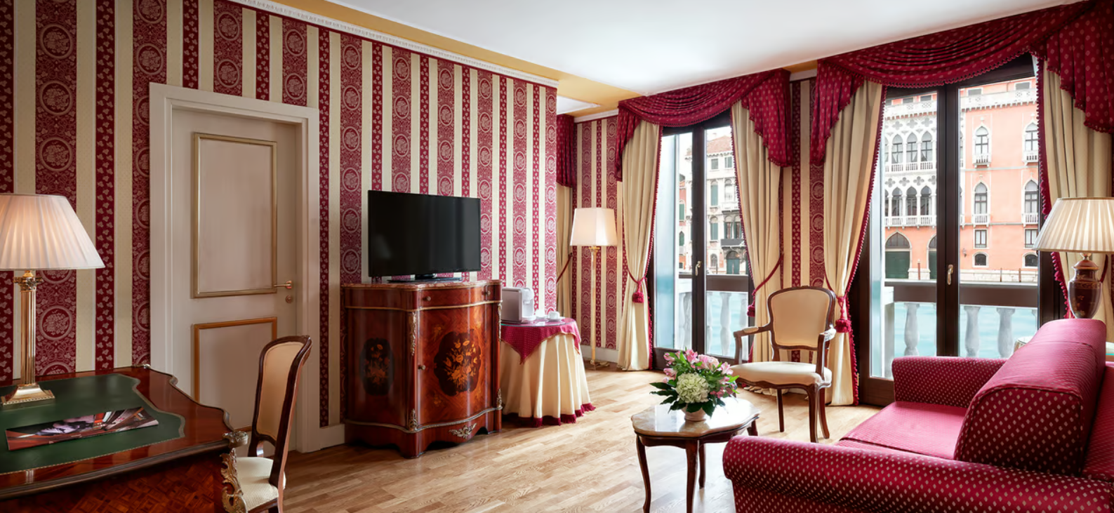 왕족처럼 베니스를 경험해보세요! 디럭스 스위트룸 의 전망은 환상적입니다. 32평방미터 규모의 객실에서는 유서 깊은 대운하의 특별한 전망을 감상할 수 있으며 낭만적이고 편안한 숙박에 이상적입니다. 앤티크 가구, 벽의 따뜻한 색상, 월풀 욕조를 갖춘 넓은 욕실이 이 스위트룸을 독특하고 특별하게 만들어줍니다.