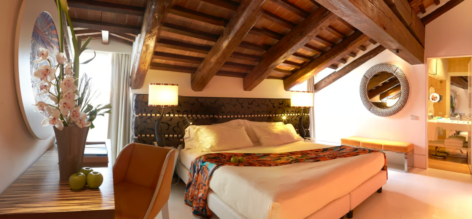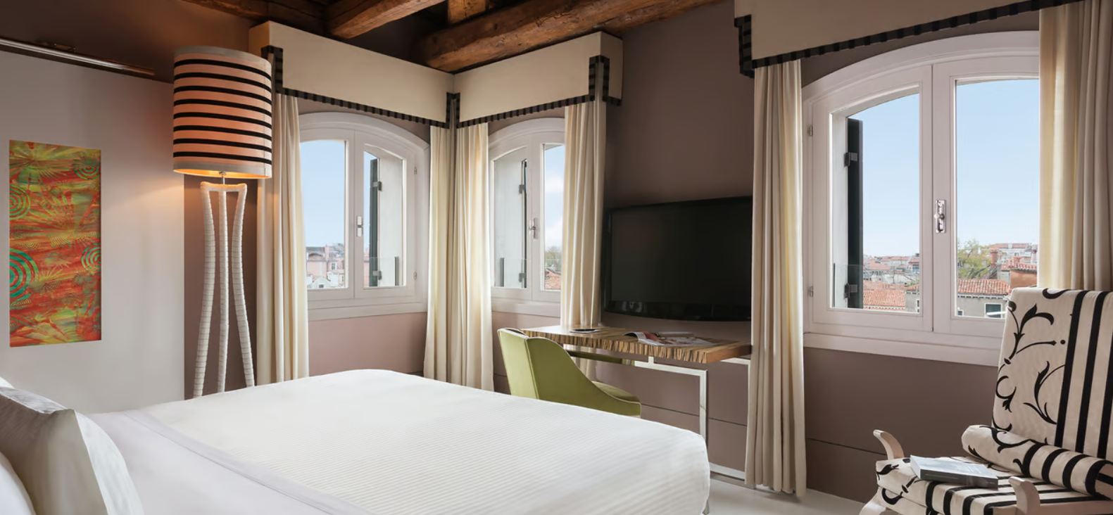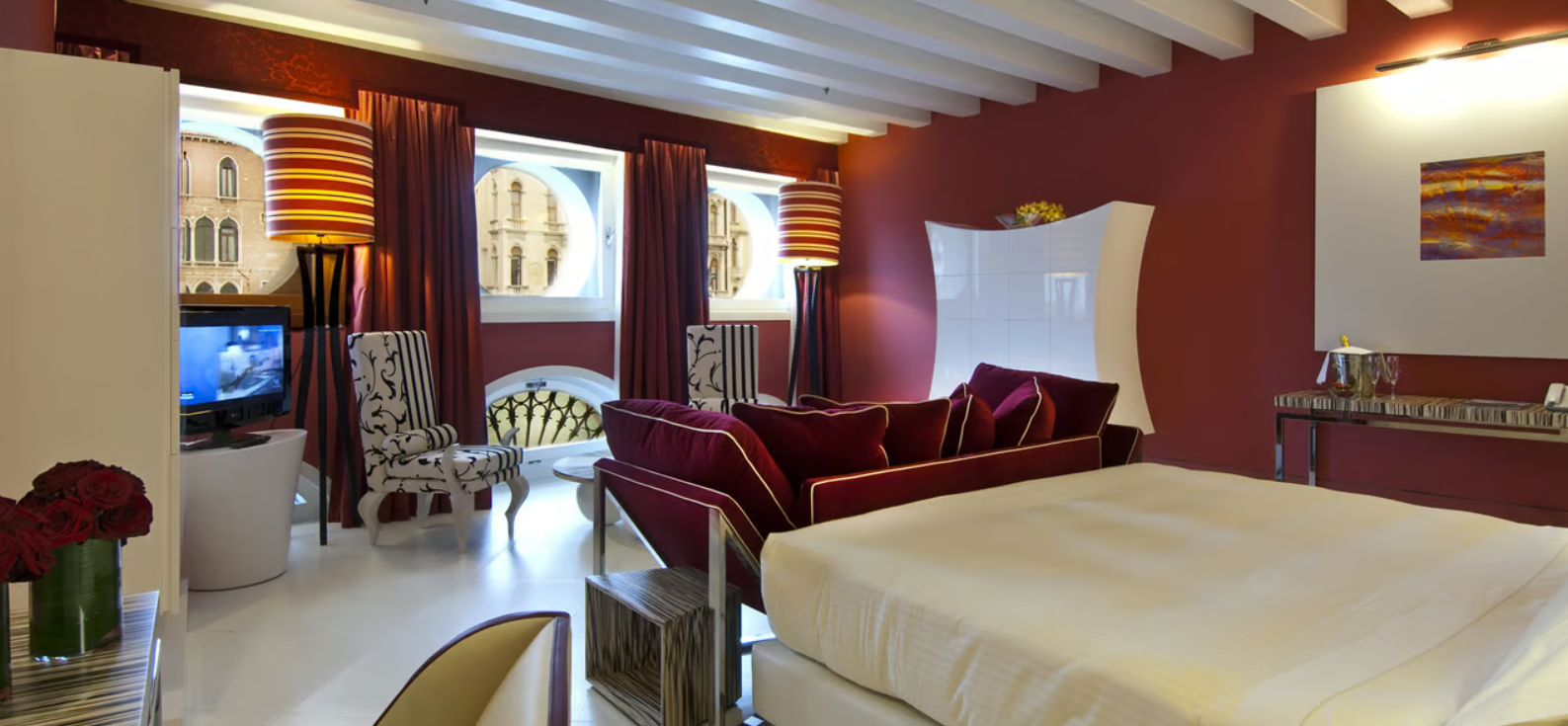 베니스의 역사적인 중심지에서 독특하고 잊을 수 없는 숙박을 꿈꾸신다면, Deluxe Junior Suites가 완벽합니다. 편안하고 넓은 이 객실은 높은 수준의 품질을 보장하며 현대적이고 세련되었습니다. 아침에는 대형 창문에서 보이는 대운하의 멋진 전망으로 달콤한 깨달음이 기다리고 있습니다.