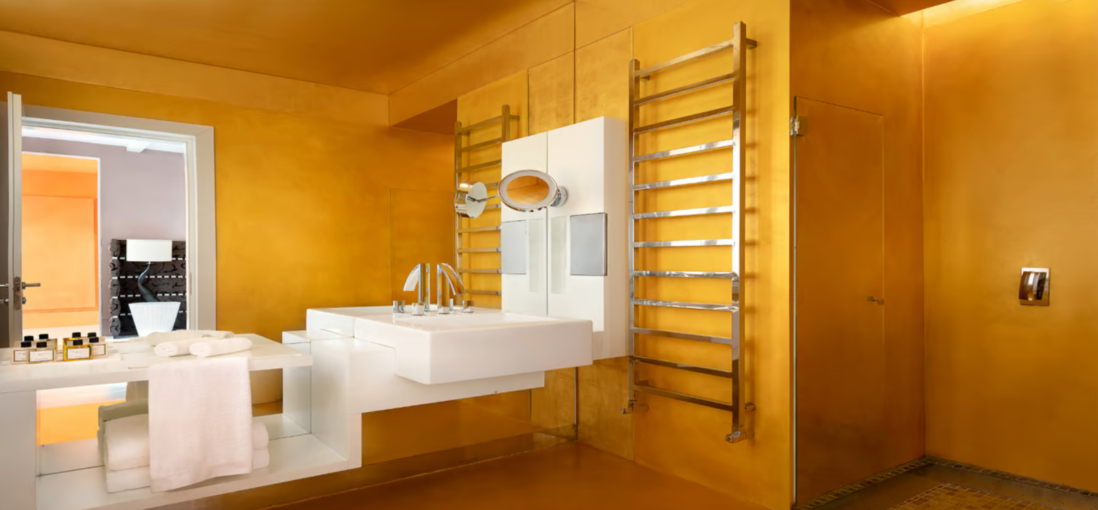 편안한 Junior Suite Superior 에서 스타일리시하게 순수한 휴식의 순간을 즐기세요 . 트윈 베드와 더블 베드가 모두 제공되며, 일부 객실에는 디자인 요소가 있는 사랑스러운 메자닌 층이 있습니다. 창문을 통해 내부 정원과 베니스 시가 내려다보입니다 . 넓은 욕실은 고급스러운 효과를 위해 금박으로 마감되었습니다.