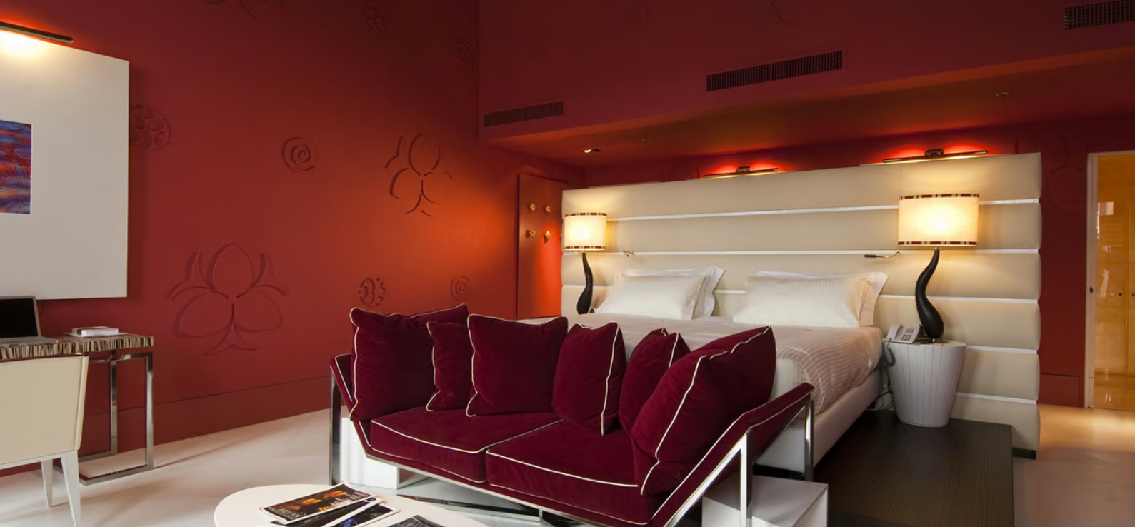 디럭스 룸은 현대적인 디자인과 내부 정원이나 도시를 내려다보는 대형 창문 덕분에 세련되고 편안한 환경으로 안내합니다. 세부 사항, 가구 및 편안함에 대한 주의가 이 객실의 강점입니다. 모든 욕실은 금박으로 마감되어 있으며 욕조 또는 샤워실을 선택할 수 있습니다.