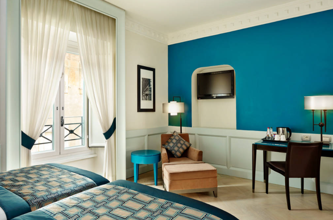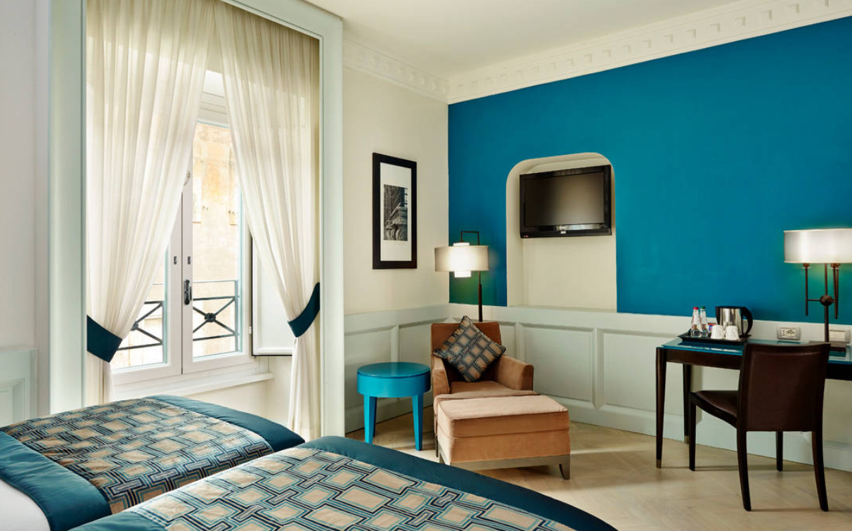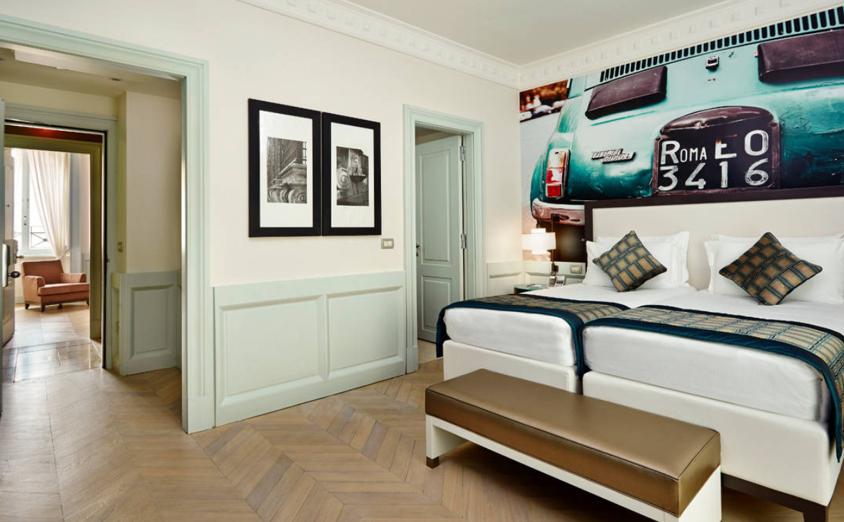 패밀리 디럭스는 현대적이고 활기찬 장식이 특징이며 , 이탈리아 디자인의 상징인 FIAT 500을 특징으로 합니다. FIAT 500은 "Made in Italy"의 상징 중 하나이며 오늘날 전 세계 빈티지 자동차 수집가들에게 사랑받고 있습니다. 55 smq/538 sq. ft 패밀리 디럭스 룸은 프라이버시와 개인 공간을 포기하지 않고도 도시 중심부에서 온 가족과 함께 로마식 숙박을 즐기고 싶은 경우에 완벽한 선택입니다. 2개의 편안한 침실(1개는 퀸 사이즈 침대 1개, 1개는 킹 사이즈 침대 1개 또는 트윈 침대 2개) , 2개의 욕실 및 2개의 독립된 출입구로 구성되어 있습니다.