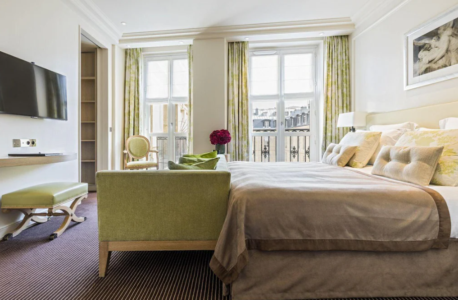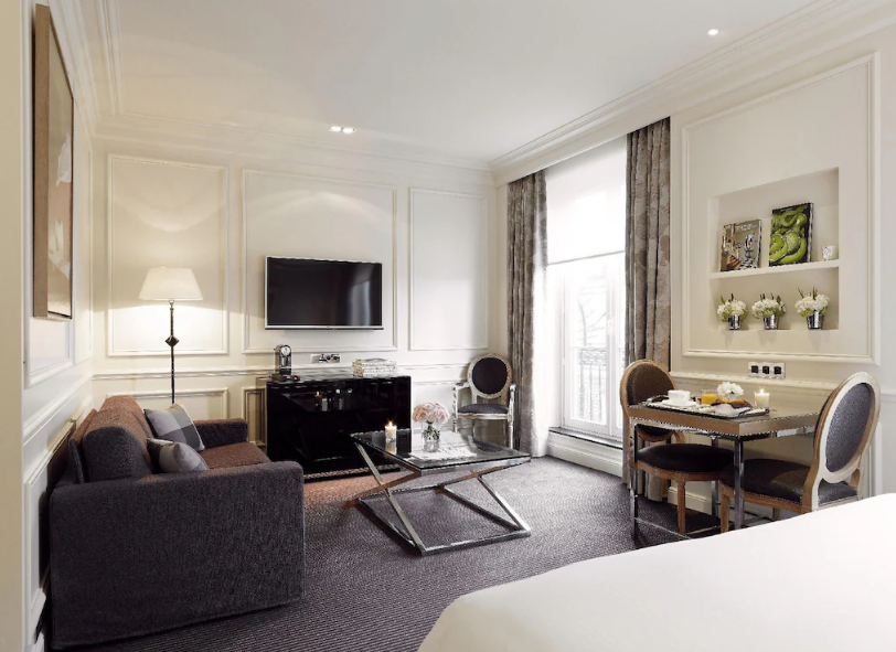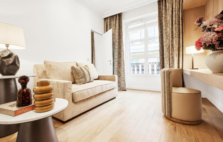 35m2의 표면적을 갖춘 스위트룸에서는 팔레 로얄(Palais Royal) 기념물인 rue de Valois의 전망을 즐기실 수 있습니다. 소파 베드가 있는 별도의 거실을 갖추고 있어 개인 공간을 존중하면서 가족 숙박이나 비즈니스 회의에 완벽한 선택입니다. 장식은 우아함과 세련미 덕분에 휴식을 취하도록 초대합니다. 일부 스위트룸에서는 전형적인 파리의 매력을 지닌 가장 아름다운 기념물의 숨막히는 전경을 최대한 활용하기 위해 추가 비용으로 높은 층에 발코니를 제공합니다. 대리석 욕실에는 샤워 시설, 욕조, 별도의 화장실이 마련되어 있습니다. 킹 사이즈 침대 또는 트윈 침대 중에서 선택하실 수 있습니다.