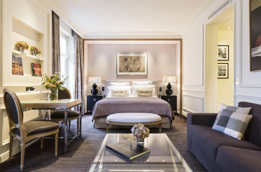 약 40m2 규모의 밝은 프레스티지 주니어 스위트룸에서는 세계적으로 유명한 파리의 에밀리 시리즈의 상징인 발루아 광장 이나 루이 14세의 삶의 장소로 유명한 팔레 루아얄의 웅장한 전망을 즐기실 수 있습니다. 매우 넓은 프레스티지 주니어 스위트룸은 한쪽에는 침실 공간이 있고 다른 한쪽에는 소파 베드가 있는 거실 공간이 있는 아일랜드 유닛으로 나누어져 빛이 가득한 넓은 공간을 보장합니다. 대리석 욕실에는 샤워 시설, 욕조, 별도의 화장실이 마련되어 있습니다. 킹 사이즈 침대 또는 트윈 침대 중에서 선택하실 수 있습니다.