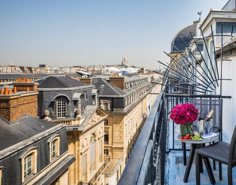 시대를 초월한 세련되고 세련된 디자인, 단단한 참나무 쪽모이 세공 마루 바닥, 디자인 분야 유명 인사들의 서명이 담긴 맞춤 제작 가구를 갖춘 에펠탑 스위트룸은 "프렌치 시크"의 정수를 구현합니다. 복층으로 구성되어 있으며 총 표면적은 약 55m2이며 루브르 박물관, 에펠탑 및 사크레 쾨르 대성당, 오페라 가르니에 및 팔레 루아얄을 향한 멋진 전망이 내려다보이는 테라스를 추가로 제공합니다. 상상력은 이 유명한 장소를 돌아다닙니다. 대리석 욕실에는 샤워 시설과 욕조가 마련되어 있습니다. 킹 사이즈 침대 또는 트윈 침대 중에서 선택하실 수 있습니다.