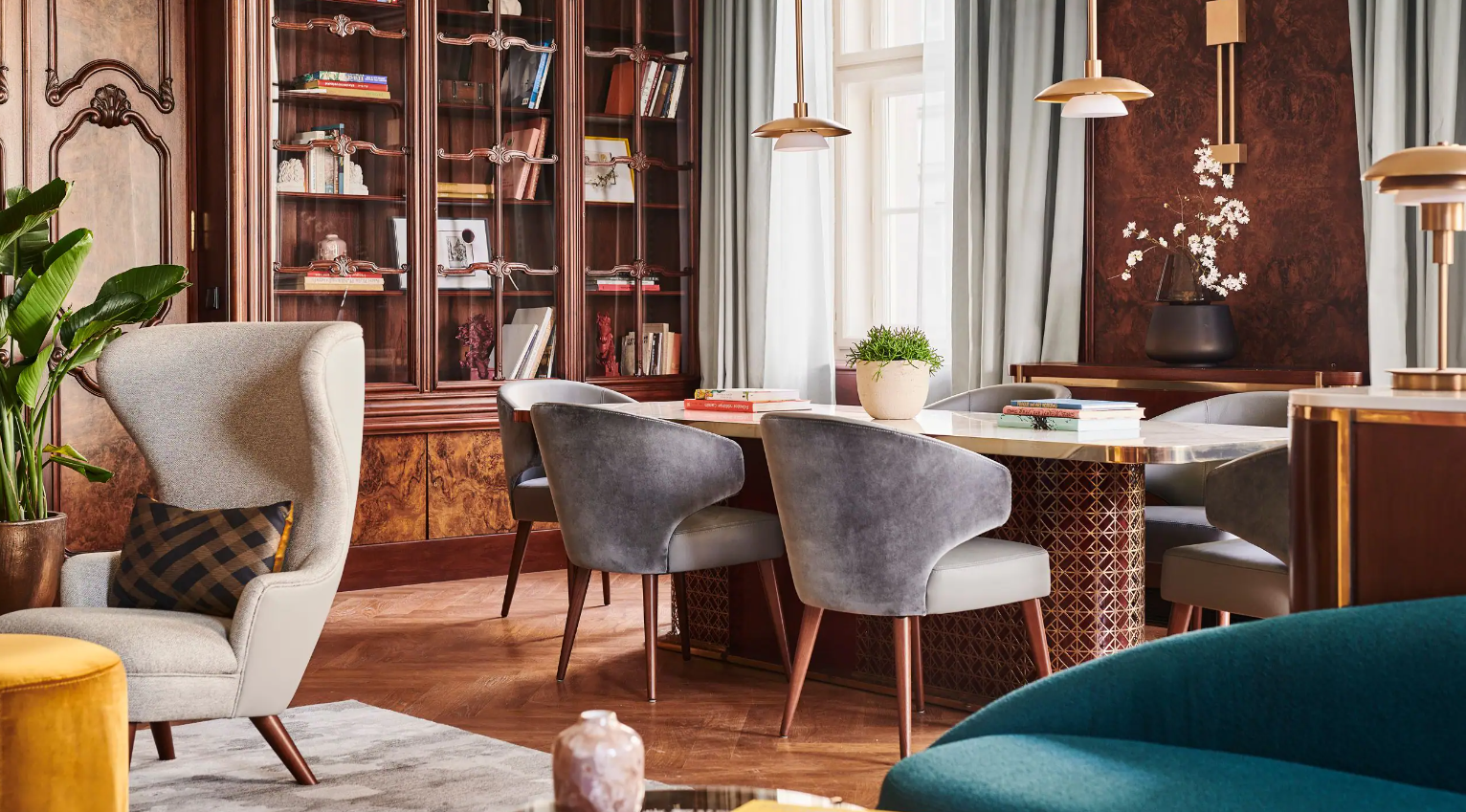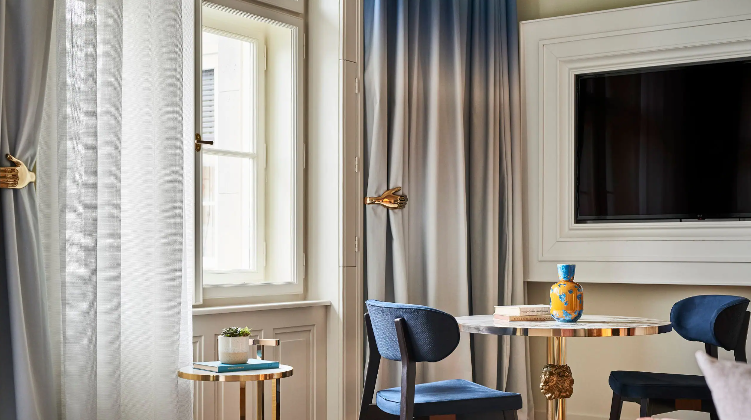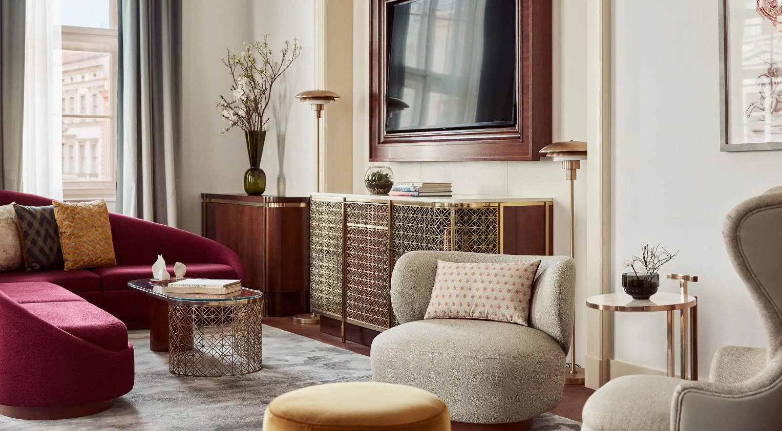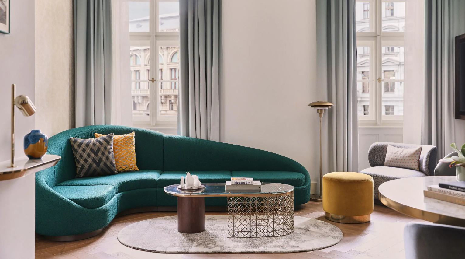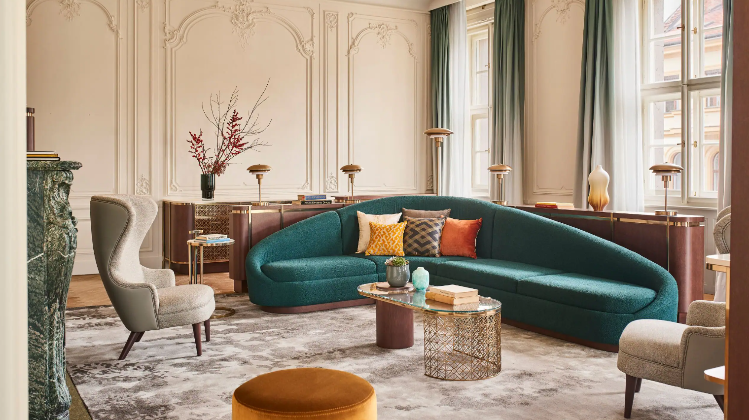 Dancing Fountain이 내려다보이는 이 럭셔리 스위트에서 웅장한 목재 패널, 빈티지 벽 몰딩, 높은 천장으로 프라하의 유산에 푹 빠져보세요. 각 스위트는 시간을 거슬러 올라가는 듯한 독특한 디자인을 선보이며 별도의 거실, 식사 공간, 책상, 킹 침실, 멋진 겨울 정원, 욕조와 샤워 시설이 있는 넓고 밝은 욕실을 갖추고 있습니다.