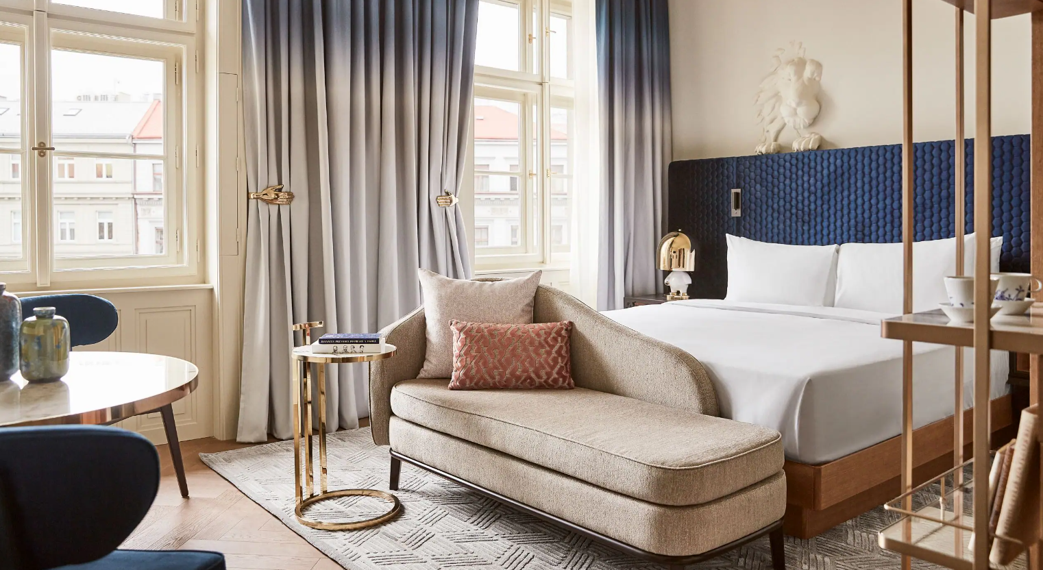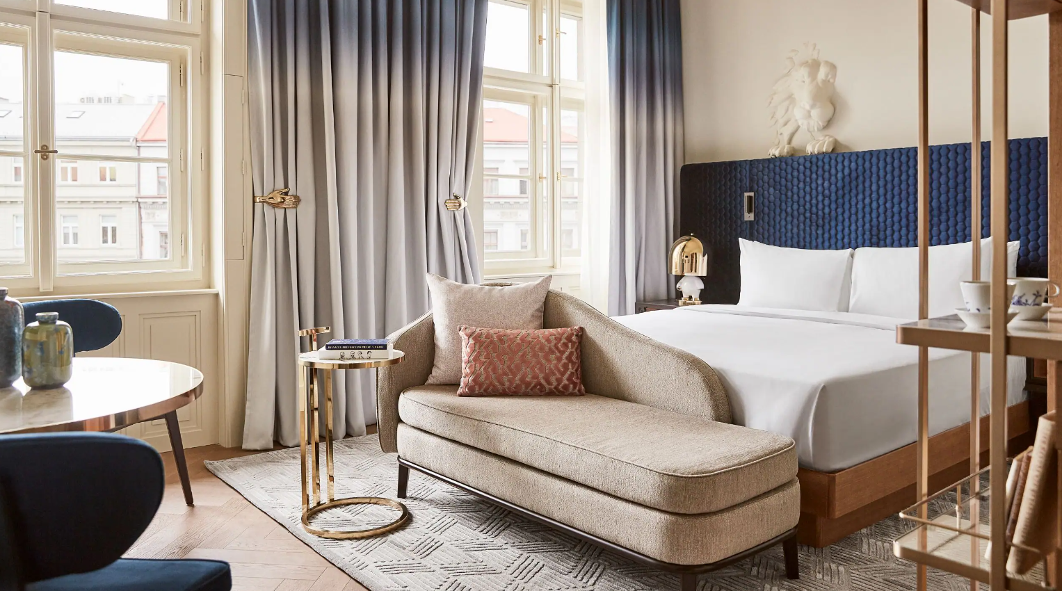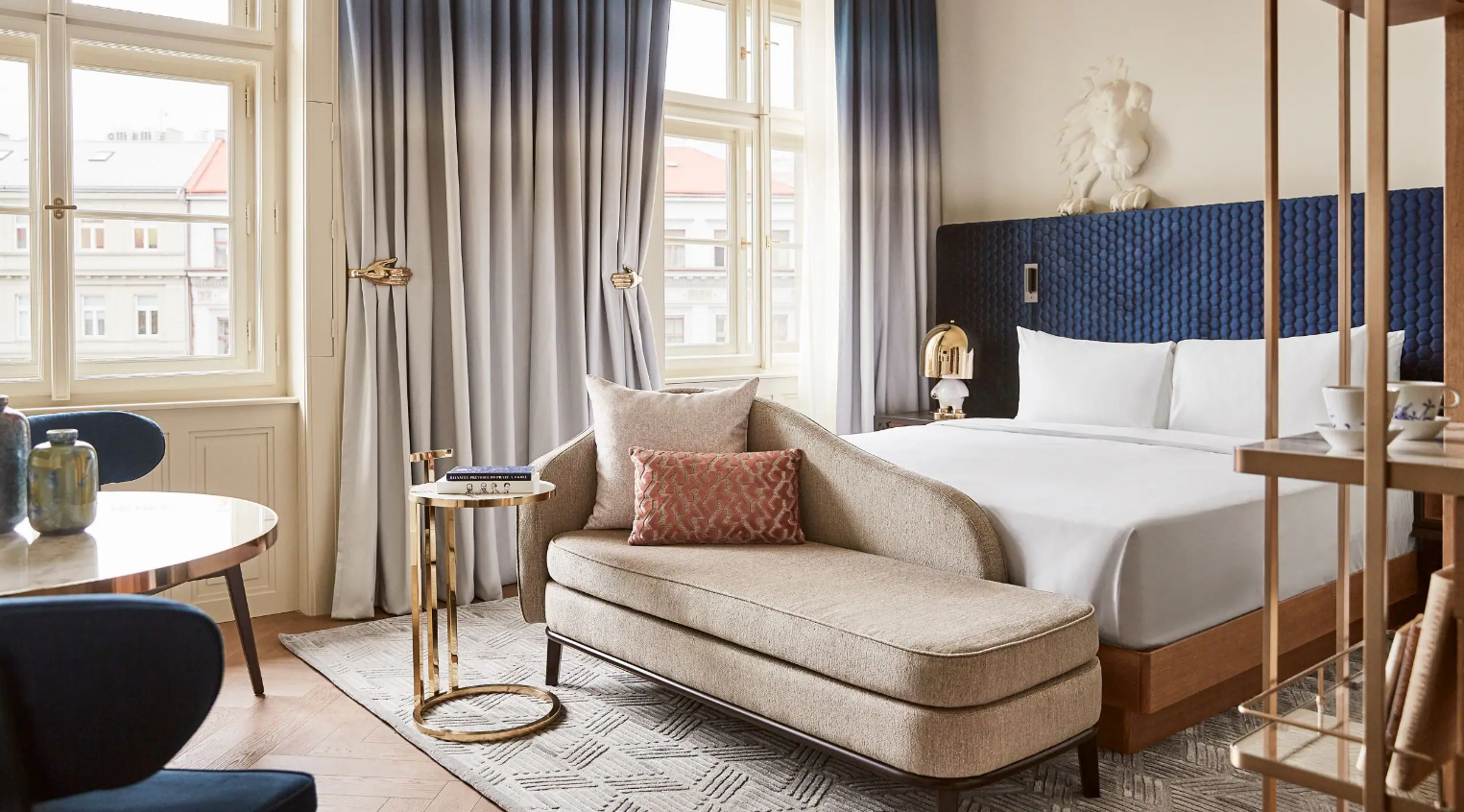 Jindrizhska Street 또는 Haymarket이 내려다보이는 이 넓은 객실에서 우아한 셰즈 롱에 누워 휴식을 취하세요. Libuše 공주가 그랬던 것처럼 별을 향해 손을 뻗거나, Bruncvik의 사자가 보호해 주는 느낌을 받으며 킹 사이즈 침대에서 꿈을 꾸세요.