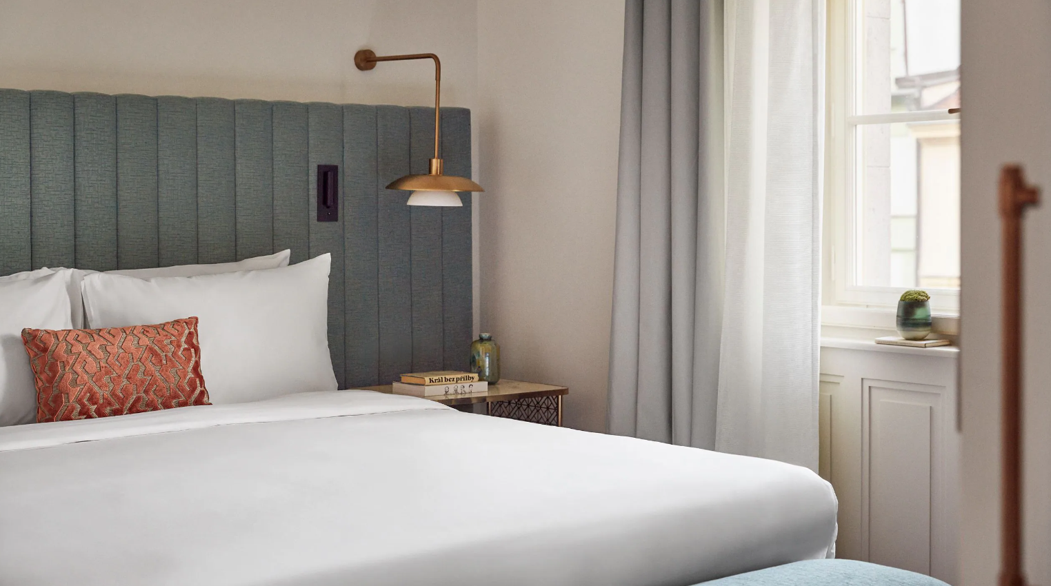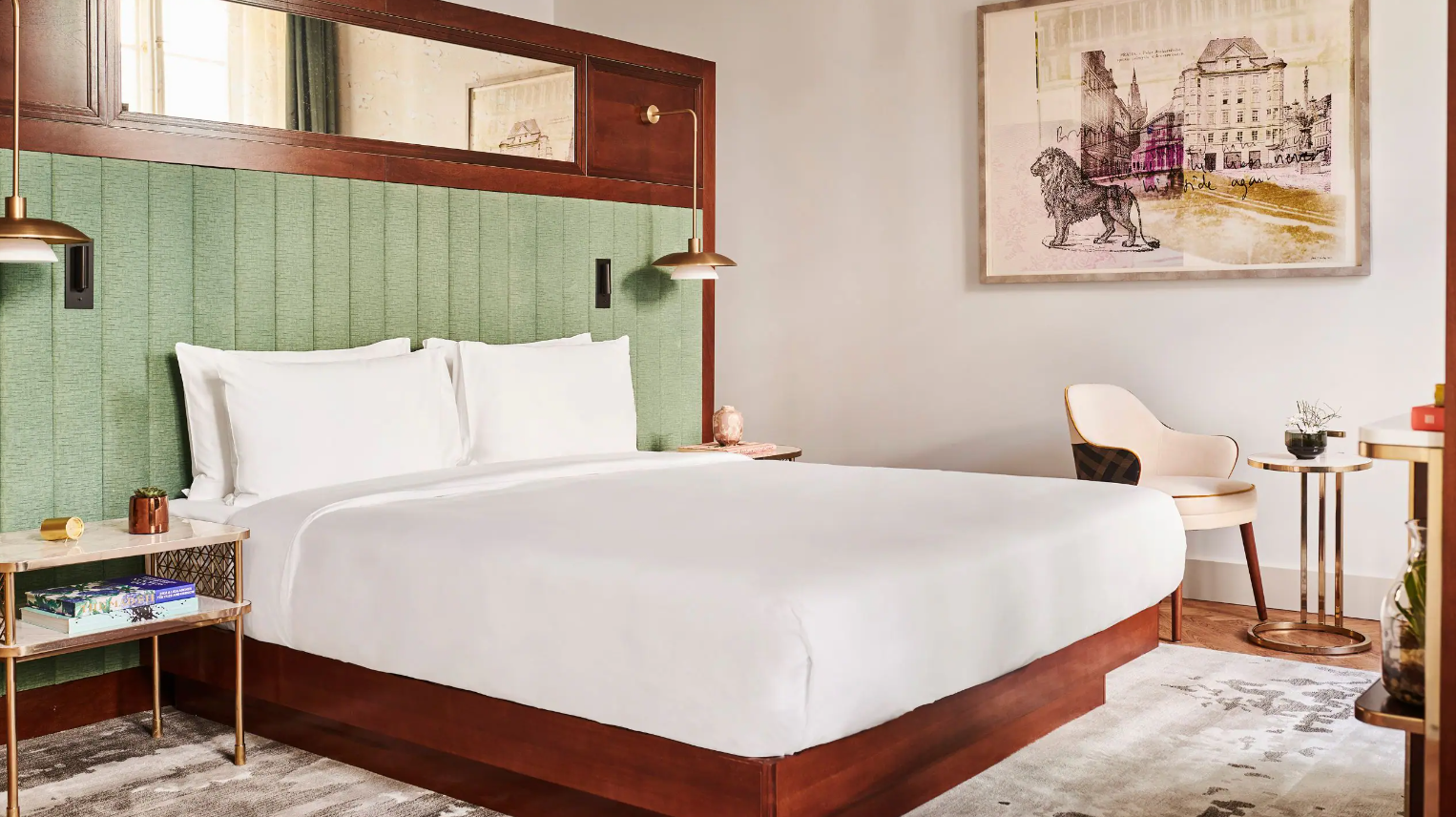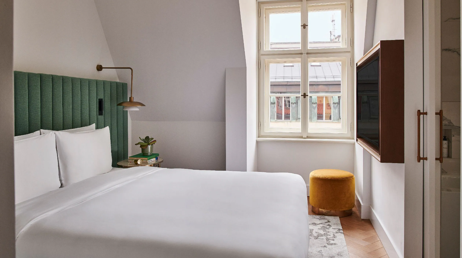이 빛이 가득한 킹룸에서 창문을 열면 헤이마켓 광장이나 세인트 헨리 교회의 그림 같은 전망이 보입니다. 객실 내부에서는 프라하의 신화와 전설에 대한 많은 힌트를 발견할 수 있습니다.