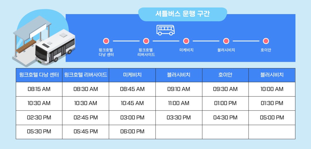 블러쉬 비치클럽은 다낭과 호이안의 구시가지 사이에 위치하고 있으며 호텔에서 셔틀 차량을 타고 이동 가능합니다. 블러쉬 비치 클럽에는 물놀이를 즐길 수 있는 넓은 풀과 바와 레스토랑이 있어 음료를 마시거나 식사를 할 수 있습니다. 다낭 시내 한복판에 있는 호텔에서는 느낄 수 없는 또 다른 휴식 시간을 만끽할 수 있으며, 주말 저녁에는 DJ 풀파티가 열리는 곳으로도 유명한 장소입니다.