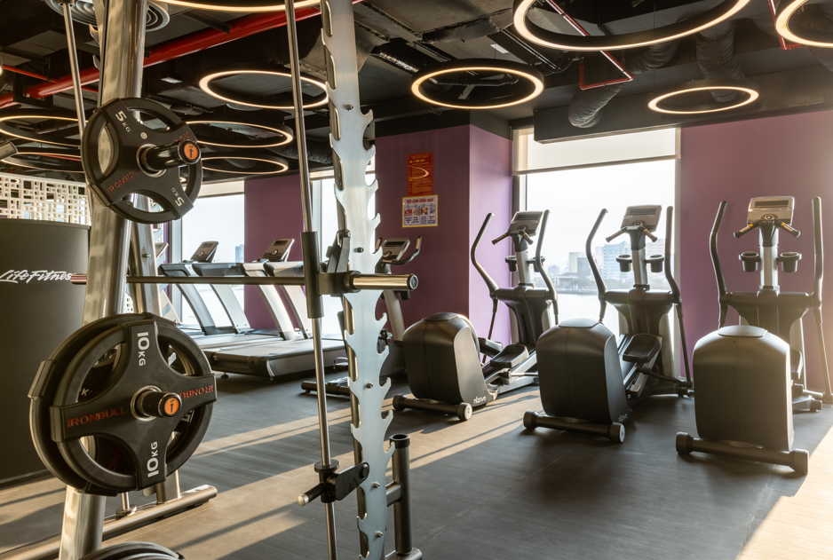 4층에 위치한 피트니스 센터는 24시간 이용 가능하며, 다양한 근력 기구와 유산소 기구, 프리웨이트 존, 스트레칭 존이 마련되어 있습니다.