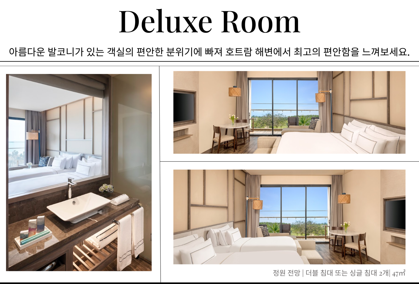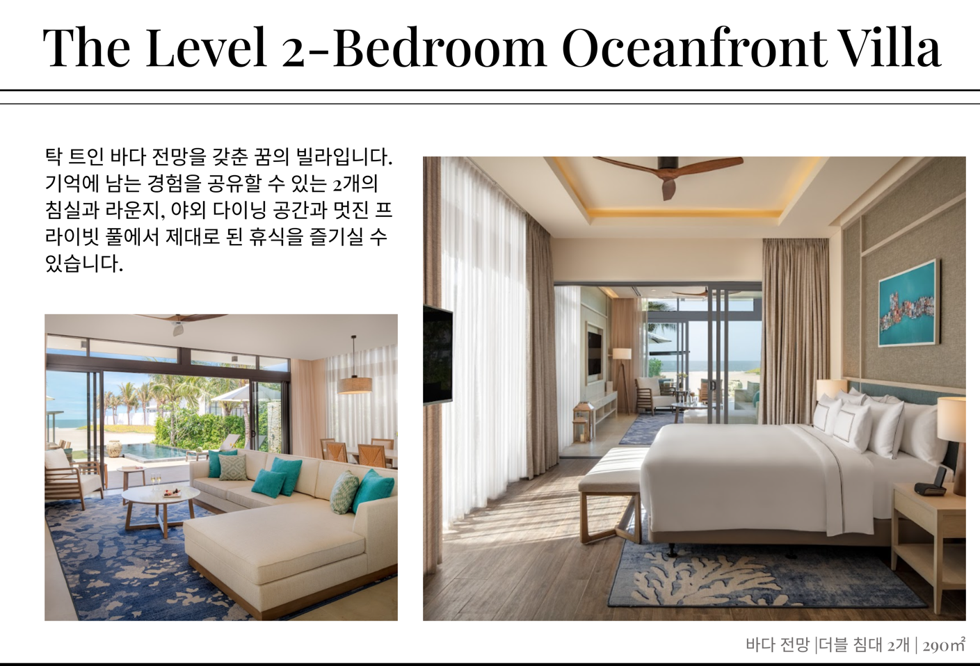 딜럭스 룸/딜럭스 오션뷰/2 베드룸 패밀리 스위트 오션뷰/레벨 1 베드룸 풀빌라/레벨 2 베드룸 풀빌라